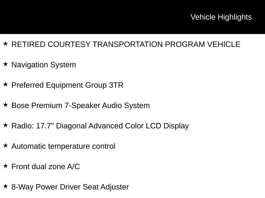 - SiriusXM Trial Subscription (IMPORTANT: the SiriusXM trial subscription is not provided on vehicles that are ordered for Fleet Daily Rental ("FDR") use. Trial subscription is subject to the SiriusXM Customer Agreement and privacy policy, visit www.siriusxm.com which includes full terms and how to cancel. All fees, content, features, and availability are subject to change.)