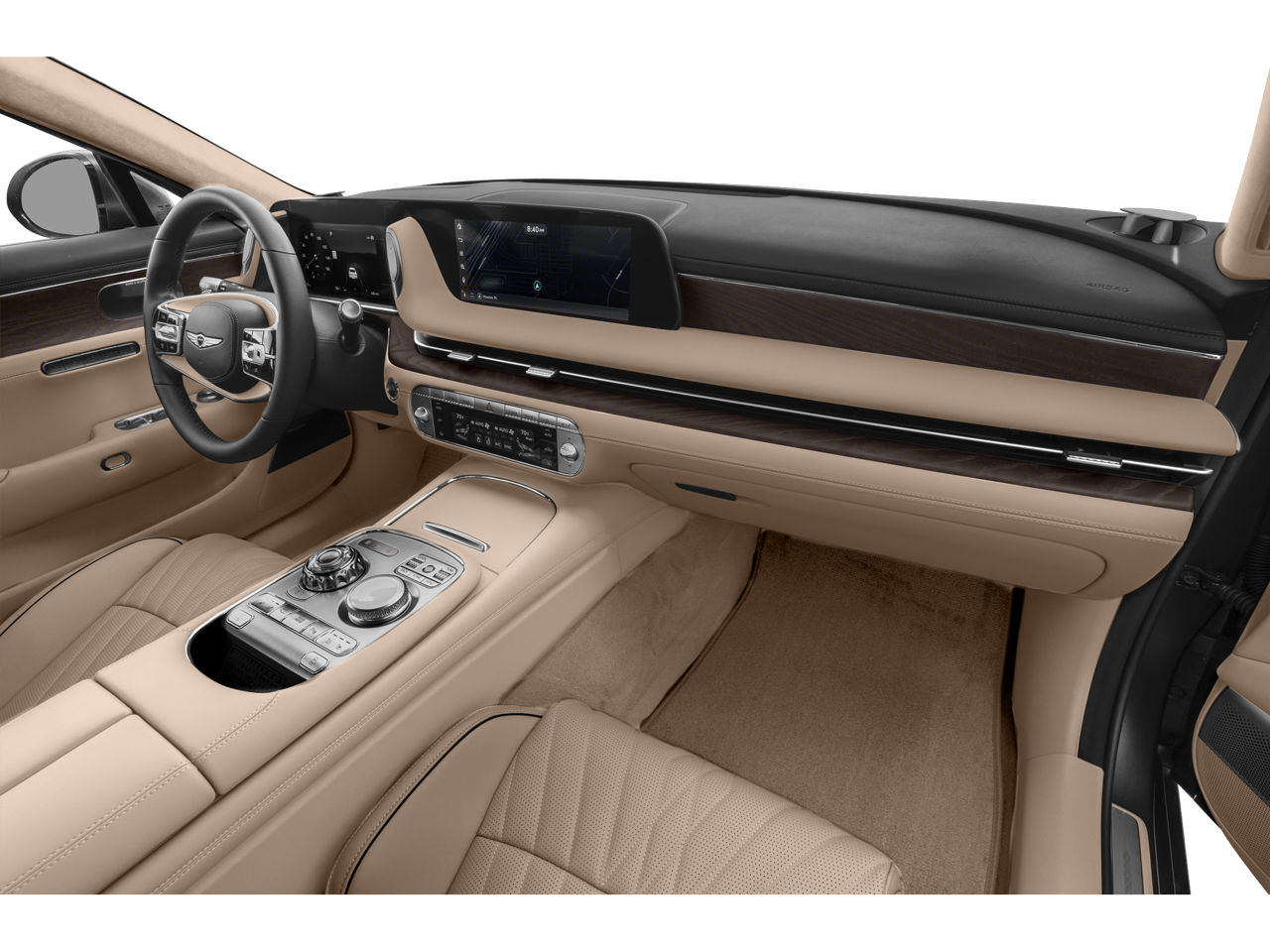 4-Wheel Disc Brakes, ABS brakes, Adaptive suspension, Air Conditioning, Alloy wheels, AM/FM radio: SiriusXM, Anti-whiplash front head restraints, Auto High-beam Headlights, Auto tilt-away steering wheel, Auto-dimming door mirrors, Auto-dimming Rear-View mirror, Auto-leveling suspension, Automatic temperature control, Brake assist, Bumpers: body-color, Cargo Block, Compass, Delay-off headlights, Driver door bin, Driver vanity mirror, Dual front impact airbags, Dual front side impact airbags, Electronic Stability Control, Emergency communication system: Genesis Connected Services, Exterior Parking Camera Rear, First Aid Kit, Four wheel independent suspension, Front anti-roll bar, Front Bucket Seats, Front Center Armrest, Front dual zone A/C, Front reading lights, Fully automatic headlights, Garage door transmitter: HomeLink, Genuine wood console insert, Genuine wood dashboard insert, Genuine wood door panel insert, Heads-Up Display, Heated & Ventilated Front Bucket Seats, Heated front seats, Heated rear seats, Heated steering wheel, Illuminated Door Sill Plates, Illuminated entry, Knee airbag, Low tire pressure warning, Memory seat, Nappa Leather Seating Surfaces, Navigation System, Occupant sensing airbag, Option Group 01, Outside temperature display, Overhead airbag, Overhead console, Panic alarm, Passenger door bin, Passenger vanity mirror, Power adjustable rear head restraints, Power door mirrors, Power driver seat, Power moonroof, Power passenger seat, Power steering, Power windows, Radio data system, Radio: AM/FM Bang & Olufsen 3D Prem Audio System, Rain sensing wipers, Rear air conditioning, Rear anti-roll bar, Rear reading lights, Rear seat center armrest, Rear side impact airbag, Rear Window Blind, Rear window defroster, Remote keyless entry, Roadside Assistance Kit, Security system, Speed control, Speed-sensing steering, Speed-Sensitive Wipers, Steering wheel memory, Steering wheel mounted audio controls, Tachometer, Telescoping steering wheel, Tilt steering wheel, Traction control, Trip computer, Variably intermittent wipers, Ventilated front seats, Ventilated rear seats, Wheel Locks, Wheels: 21 x 8.5J Fr & 21 x 9.5J Rr Alloy.