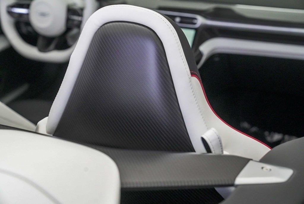 The cabin is a showcase of bespoke craftsmanship, featuring rich semi aniline leather in Onyx Black and Glacier White arranged in a sophisticated duo tone design. Every surface reflects meticulous attention to detail, from carbon fiber interior trim to precision stitching and red accented seatbelts. Heated and ventilated seats with memory, a heated steering wheel, and premium materials throughout create an environment that is both indulgent and driver focused.