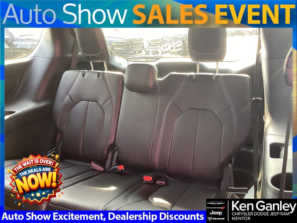 *Heated steering wheel, *ParkView Rear Back-Up Camera, 10.1 Touchscreen Display, 18 x 7.5 Painted Aluminum Wheels, 3.73 Axle Ratio, 3rd row seats: split-bench, 4-Wheel Disc Brakes, 4G LTE Wi-Fi Hot Spot, 6 Speakers, ABS brakes, Air Conditioning, Alloy wheels, AM/FM radio: SiriusXM, Apple CarPlay, Apple CarPlay/Android Auto, Auto-dimming Rear-View mirror, Automatic temperature control, AWD Suspension, Black Seats, Brake assist, Bumpers: body-color, Caprice Leatherette Bucket Seats, Compass, Connectivity - US/Canada, Delay-off headlights, Disassociated Touchscreen Display, Driver door bin, Driver vanity mirror, Driver's Seat Mounted Armrest, Dual front impact airbags, Dual front side impact airbags, Electronic Stability Control, Emergency communication system: Chrysler Connect, For Details, Visit DriveUconnect.com, Four wheel independent suspension, Front anti-roll bar, Front Bucket Seats, Front dual zone A/C, Front fog lights, Front reading lights, Front Splash Guards, Fully automatic headlights, Garage door transmitter, Google Android Auto, GPS Antenna Input, Heated door mirrors, Heated front seats, Illuminated entry, Integrated Active Noise Cancellation, Integrated Center Stack Radio, Knee airbag, Low tire pressure warning, Memory seat, MOPAR Paint Protection Film, MOPAR Splash Guards - Vehicle Set, MyFlexCare Service Plan, Occupant sensing airbag, Outside temperature display, Overhead airbag, Overhead console, Panic alarm, Passenger door bin, Passenger seat mounted armrest, Passenger vanity mirror, Power door mirrors, Power driver seat, Power Front/Fixed Rear Full Sunroof, Power Liftgate, Power Open/Close Shade, Power steering, Power windows, Quick Order Package 27L, Radio data system, Radio: Uconnect 5 with 10.1 Display, Rain sensing wipers, Rear air conditioning, Rear reading lights, Rear Splash Guards, Rear window defroster, Rear window wiper, Reclining 3rd row seat, Remote keyless entry, Security system, Speed control, Split folding rear seat, Spoiler, Steering wheel mounted audio controls, Tachometer, Telescoping steering wheel, Tilt steering wheel, Traction control, Trip computer, Turn signal indicator mirrors, USB Host Flip, Variably intermittent wipers, Voltmeter. PRICING AVAILABLE TO ALL CUSTOMER!!! WE ARE ONE OF OHIO'S LEADING VOLUME DEALERSHIPS COME SEE OUR HUGE SELECTION AND UNMATCHED SAVINGS ONLY AT GANLEY VILLAGE CHRYSLER DODGE JEEP RAM FIAT OF PAINESVILLE, OH 44077.