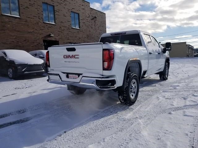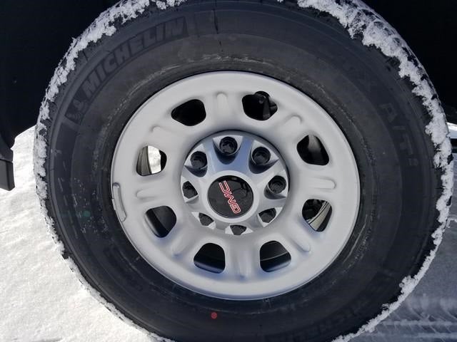1SA Pro Safety Plus Package (Auto-Dimming Inside Rear-View Mirror, Lane Change Alert with Side Blind Zone Alert, Perimeter Lighting, Power-Adjustable Black Outside Mirrors, Rear Cross Traffic Alert, and Ultrasonic Front and Rear Park Assist), Convenience Package (Deep-Tinted Glass, Electric Rear-Window Defogger, EZ Lift Power Lock and Release Tailgate, and LED Cargo Area Lighting), Gooseneck/5th Wheel Prep Package (Spray-on Pickup Bedliner), Max Trailering Package, Preferred Equipment Group 1SA (2 Charge/Data USB Ports, 2-Speed Electronic Shift Transfer Case, Chrome Grille with Flat Black Grille Insert Bars, OnStar Services Capable, Push Button Start, Remote Keyless Entry, Solar Absorbing Tinted Glass, and Wireless Phone Projection), Snow Plow Prep/Camper Package (220-Amp Alternator), Suspension Package, 10-Speed Automatic, 4WD, Jet Black Vinyl, 120-Volt Bed Mounted Power Outlet, 120-Volt Instrument Panel Power Outlet, 2 Charge-Only Rear USB Ports, 4-Way Manual Driver Seat Adjuster, 4-Way Manual Passenger Seat Adjuster, 4-Wheel Disc Brakes, 6 Speakers, 6-Speaker Audio System Feature, ABS brakes, Air Conditioning, AM/FM radio, Apple CarPlay/Android Auto, Auto High-beam Headlights, Automatic Emergency Braking, Brake assist, Buckle to Drive, Bumpers: chrome, Compass, Delay-off headlights, Driver door bin, Dual 220-Amps Primary and 170-Amps Auxiliary Alternators, Dual front impact airbags, Dual front side impact airbags, Electronic Stability Control, Emergency communication system: OnStar, Engine Block Heater, Exhaust Brake, Following Distance Indicator, Forward Collision Alert, Front 40/20/40 Split-Bench Seats, Front anti-roll bar, Front Center Armrest w/Storage, Front Pedestrian Braking, Front reading lights, Front wheel independent suspension, Fully automatic headlights, Heavy-Duty 80 Amp Battery, Illuminated entry, IntelliBeam Automatic High Beam on/Off, Lane Departure Warning System, Low tire pressure warning, Occupant sensing airbag, Outside temperature display, Overhead airbag, Overhead console, Panic alarm, Passenger door bin, Passenger vanity mirror, Pickup Box, Power steering, Power windows, Premium audio system: GMC Infotainment System, Radio: AM/FM with GMC Infotainment System, Rear reading lights, Rear step bumper, Remote keyless entry, Speed control, Split folding rear seat, Tachometer, Tilt steering wheel, Traction control, Trip computer, Variably intermittent wipers, Vinyl Seat Trim, Voltmeter, Wheels: 17 Silver Painted Steel, Wheels: 18 Silver 8-Spoke Painted Steel, and Winter Grille Cover.