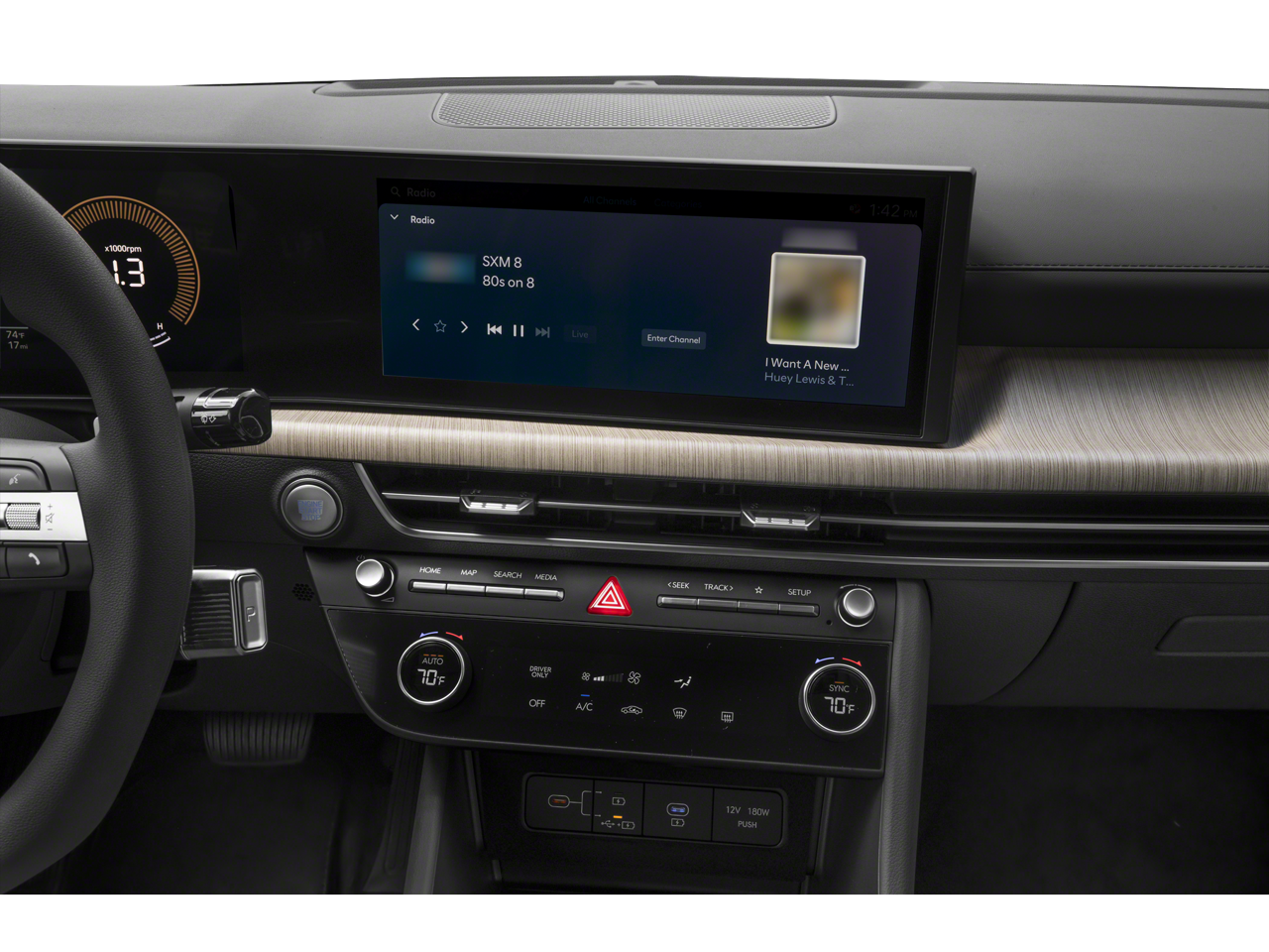 - Radio: AM/FM/HD/MP3/SiriusXM -inc: 12.3" high-resolution touchscreen, 6 speakers (2 front door mounted speakers, 2 tweeters and 2 rear speakers), smartphone integration, Bluetooth®, Over-The-Air updates, USB connectivity, Blue Link+ connected car, Android Auto/Apple CarPlay capability (wireless and wired) and shark fin design antenna w/SiriusXM reception