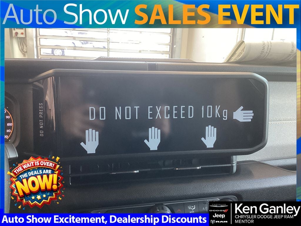 *ParkView Rear Back-Up Camera, 12.3 Touchscreen Display, 3.45 Overall Top Gear Ratio, 4-Wheel Disc Brakes, 4G LTE Wi-Fi Hot Spot, 8 Speakers, ABS brakes, Air Conditioning, AM/FM radio: SiriusXM with 360L, Apple CarPlay, Apple CarPlay/Android Auto, Aux Battery, Black 3-Piece Hard Top, Brake assist, Cloth Low-Back Bucket Seats, Compass, Connectivity - US/Canada, Deep Tint Sunscreen Windows, Delay-off headlights, Driver door bin, Driver vanity mirror, Dual front impact airbags, Dual front side impact airbags, Electronic Stability Control, For More Info, Call 800-643-2112, Freedom Panel Storage Bag, Front anti-roll bar, Front Bucket Seats, Front Center Armrest w/Storage, Front fog lights, Front reading lights, Google Android Auto, Illuminated entry, Integrated Center Stack Radio, Integrated roll-over protection, Low tire pressure warning, MOPAR All-Weather Floor Mats, Myflexcare Service Plan, Non-Lock Fuel Cap Without Discriminator, Normal Duty Suspension, Occupant sensing airbag, Outside temperature display, Overhead airbag, Panic alarm, Passenger door bin, Passenger vanity mirror, Power steering, Power windows, Quick Order Package 22B Sport, Radio data system, Radio: Uconnect 5 with 12.3 Display, Rear anti-roll bar, Rear reading lights, Rear Window Defroster, Rear Window Wiper/Washer, Remote keyless entry, SiriusXM Radio Service, SiriusXM with 360L, Speed control, Steering wheel mounted audio controls, Stop-Start Dual Battery System, Tachometer, Telescoping steering wheel, Tilt steering wheel, Traction control, Trip computer, Variably intermittent wipers, Wheels: 17 x 7.5 Black Steel Styled. PRICING AVAILABLE TO ALL CUSTOMER!!! WE ARE ONE OF OHIO'S LEADING VOLUME DEALERSHIPS COME SEE OUR HUGE SELECTION AND UNMATCHED SAVINGS ONLY AT GANLEY VILLAGE CHRYSLER DODGE JEEP RAM FIAT OF PAINESVILLE, OH 44077.