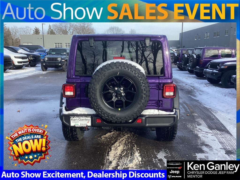 *ParkView Rear Back-Up Camera, 12.3 Touchscreen Display, 2-Door Passive Entry, Front Door Locks, 4-Wheel Disc Brakes, 4-Wheel Drive Swing Gate Decal, 4G LTE Wi-Fi Hot Spot, 7 and 4 Pin Wiring Harness, 8 Speakers, ABS brakes, Advanced Brake Assist, Air Conditioning, Air Conditioning with Auto Temp Control, Air Filtering, AM/FM radio: SiriusXM with 360L, Apple CarPlay, Apple CarPlay/Android Auto, Automatic Headlamps, Aux Battery, Auxiliary Switches, Black Grille with Gloss Black Rings, Brake assist, Class II Receiver Hitch, Cluster 7.0 TFT Color Display, Compass, Connectivity - US/Canada, Convenience Group, Conventional Differential Front Axle, Corning Gorilla Glass, Dana M210 Wide HD Tube Front Axle, Dana M220 Wide Rear Axle, Daytime Running Lamps LED Accents, Deep Tint Sunscreen Windows, Delay-off headlights, Driver door bin, Driver vanity mirror, Dual front impact airbags, Dual front side impact airbags, E-Locker Rear Axle, Electronic Stability Control, Emergency/Assistance Call, Enhanced Adaptive Cruise Control, For More Info, Call 800-643-2112, Front anti-roll bar, Front Bucket Seats, Front Center Armrest w/Storage, Front fog lights, Front LED Fog Lamps, Front reading lights, Full Speed Forward Collision Warning Plus, Google Android Auto, Heated Front Seats, Heated Steering Wheel, Illuminated entry, Injection Molded Black Rear Bumper, Integrated Center Stack Radio, Integrated roll-over protection, LED Premium Reflector Headlamps, Low tire pressure warning, Mold in Color Bumper with Gloss Black, Molded in Color Rubicon Highline Flare, MOPAR All-Weather Floor Mats, Myflexcare Service Plan, Non-Lock Fuel Cap Without Discriminator, Normal Duty Suspension, Occupant sensing airbag, Off-Road Plus Mode, Outside temperature display, Overhead airbag, Panic alarm, Passenger door bin, Passenger vanity mirror, Power Dome Dual Vented Hood, Power Heated Mirrors, Power steering, Power Top Quarter Window Storage Bag, Power windows, Premium Wrapped Steering Wheel, Quick Order Package 22W Willys, Radio data system, Radio: Uconnect 5 with 12.3 Display, Rear anti-roll bar, Rear reading lights, Rear Window Defroster, Rear Window Wiper/Washer, Remote keyless entry, Removable Rear Quarter Windows, Security Alarm, SiriusXM Radio Service, SiriusXM with 360L, Sky One-Touch Power Top, Speed control, Split folding rear seat, Steel Power Dome Hood Package, Steering wheel mounted audio controls, Stop-Start Dual Battery System, Sun Visors with Illuminated Vanity Mirrors, Tachometer, Telescoping steering wheel, Tilt steering wheel, Traction control, Trip computer, Universal Garage Door Opener, Variably intermittent wipers, Wheels: 17 x 7.5 Black Steel Styled, Wheels: 17 x 7.5 Painted Black, Willy's Suspension, Willys Hood Decal. PRICING AVAILABLE TO ALL CUSTOMER!!! WE ARE ONE OF OHIO'S LEADING VOLUME DEALERSHIPS COME SEE OUR HUGE SELECTION AND UNMATCHED SAVINGS ONLY AT GANLEY VILLAGE CHRYSLER DODGE JEEP RAM FIAT OF PAINESVILLE, OH 44077.