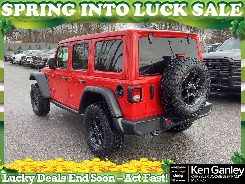 *ParkView Rear Back-Up Camera, 12.3 Touchscreen Display, 2-Door Passive Entry, Front Door Locks, 4-Wheel Disc Brakes, 4-Wheel Drive Swing Gate Decal, 4G LTE Wi-Fi Hot Spot, 7 and 4 Pin Wiring Harness, 8 Speakers, ABS brakes, Advanced Brake Assist, Air Conditioning, Air Conditioning with Auto Temp Control, Air Filtering, AM/FM radio: SiriusXM with 360L, Apple CarPlay, Apple CarPlay/Android Auto, Automatic Headlamps, Aux Battery, Auxiliary Switches, Black Grille with Gloss Black Rings, Brake assist, Class II Receiver Hitch, Cluster 7.0 TFT Color Display, Compass, Connectivity - US/Canada, Convenience Group, Conventional Differential Front Axle, Corning Gorilla Glass, Dana M210 Wide HD Tube Front Axle, Dana M220 Wide Rear Axle, Daytime Running Lamps LED Accents, Deep Tint Sunscreen Windows, Delay-off headlights, Driver door bin, Driver vanity mirror, Dual front impact airbags, Dual front side impact airbags, E-Locker Rear Axle, Electronic Stability Control, Emergency/Assistance Call, Enhanced Adaptive Cruise Control, For More Info, Call 800-643-2112, Front anti-roll bar, Front Bucket Seats, Front Center Armrest w/Storage, Front fog lights, Front LED Fog Lamps, Front reading lights, Full Speed Forward Collision Warning Plus, Google Android Auto, Heated Front Seats, Heated Steering Wheel, Illuminated entry, Increased Travel Export Tuned Suspension, Injection Molded Black Rear Bumper, Integrated Center Stack Radio, Integrated roll-over protection, LED Premium Reflector Headlamps, Low tire pressure warning, Mold in Color Bumper with Gloss Black, Molded in Color Rubicon Highline Flare, MOPAR All-Weather Floor Mats, Myflexcare Service Plan, Non-Lock Fuel Cap Without Discriminator, Normal Duty Suspension, Occupant sensing airbag, Off-Road Plus Mode, Outside temperature display, Overhead airbag, Panic alarm, Passenger door bin, Passenger vanity mirror, Power Heated Mirrors, Power steering, Power Top Quarter Window Storage Bag, Power windows, Premium Wrapped Steering Wheel, Quick Order Package 22W Willys, Radio data system, Radio: Uconnect 5 with 12.3 Display, Rear anti-roll bar, Rear reading lights, Rear Window Defroster, Rear Window Wiper/Washer, Remote keyless entry, Removable Rear Quarter Windows, Security Alarm, SiriusXM Radio Service, SiriusXM with 360L, Sky One-Touch Power Top, Speed control, Split folding rear seat, Steering wheel mounted audio controls, Stop-Start Dual Battery System, Sun Visors with Illuminated Vanity Mirrors, Tachometer, Telescoping steering wheel, Tilt steering wheel, Traction control, Trip computer, Universal Garage Door Opener, Variably intermittent wipers, Wheels: 17 x 7.5 Black Steel Styled, Wheels: 17 x 7.5 Painted Black, Willys Hood Decal. PRICING AVAILABLE TO ALL CUSTOMER!!! WE ARE ONE OF OHIO'S LEADING VOLUME DEALERSHIPS COME SEE OUR HUGE SELECTION AND UNMATCHED SAVINGS ONLY AT GANLEY VILLAGE CHRYSLER DODGE JEEP RAM FIAT OF PAINESVILLE, OH 44077.