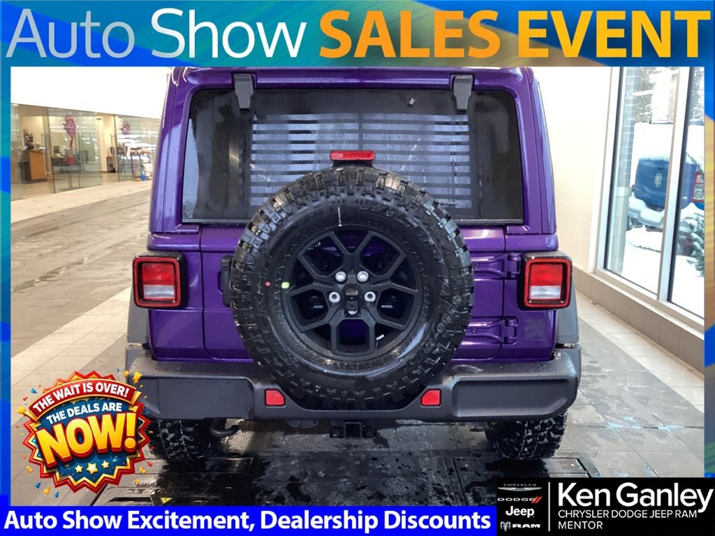 *ParkView Rear Back-Up Camera, 12.3 Touchscreen Display, 2-Door Passive Entry, Front Door Locks, 4-Wheel Disc Brakes, 4-Wheel Drive Swing Gate Decal, 4G LTE Wi-Fi Hot Spot, 7 and 4 Pin Wiring Harness, 8 Speakers, ABS brakes, Advanced Brake Assist, Air Conditioning, Air Conditioning with Auto Temp Control, Air Filtering, AM/FM radio: SiriusXM with 360L, Apple CarPlay, Apple CarPlay/Android Auto, Automatic Headlamps, Aux Battery, Auxiliary Switches, Black Grille with Gloss Black Rings, Brake assist, Class II Receiver Hitch, Cluster 7.0 TFT Color Display, Compass, Connectivity - US/Canada, Convenience Group, Conventional Differential Front Axle, Corning Gorilla Glass, Dana M210 Wide HD Tube Front Axle, Dana M220 Wide Rear Axle, Daytime Running Lamps LED Accents, Deep Tint Sunscreen Windows, Delay-off headlights, Driver door bin, Driver vanity mirror, Dual front impact airbags, Dual front side impact airbags, E-Locker Rear Axle, Electronic Stability Control, Emergency/Assistance Call, Enhanced Adaptive Cruise Control, For More Info, Call 800-643-2112, Front anti-roll bar, Front Bucket Seats, Front Center Armrest w/Storage, Front fog lights, Front LED Fog Lamps, Front reading lights, Full Speed Forward Collision Warning Plus, Google Android Auto, Heated Front Seats, Heated Steering Wheel, Illuminated entry, Injection Molded Black Rear Bumper, Integrated Center Stack Radio, Integrated roll-over protection, LED Premium Reflector Headlamps, Low tire pressure warning, Mold in Color Bumper with Gloss Black, Molded in Color Rubicon Highline Flare, MOPAR All-Weather Floor Mats, Myflexcare Service Plan, Non-Lock Fuel Cap Without Discriminator, Normal Duty Suspension, Occupant sensing airbag, Off-Road Plus Mode, Outside temperature display, Overhead airbag, Panic alarm, Passenger door bin, Passenger vanity mirror, Power Dome Dual Vented Hood, Power Heated Mirrors, Power steering, Power Top Quarter Window Storage Bag, Power windows, Premium Wrapped Steering Wheel, Quick Order Package 22W Willys, Radio data system, Radio: Uconnect 5 with 12.3 Display, Rear anti-roll bar, Rear reading lights, Rear Window Defroster, Rear Window Wiper/Washer, Remote keyless entry, Removable Rear Quarter Windows, Security Alarm, SiriusXM Radio Service, SiriusXM with 360L, Sky One-Touch Power Top, Speed control, Split folding rear seat, Steel Power Dome Hood Package, Steering wheel mounted audio controls, Stop-Start Dual Battery System, Sun Visors with Illuminated Vanity Mirrors, Tachometer, Telescoping steering wheel, Tilt steering wheel, Traction control, Trip computer, Universal Garage Door Opener, Variably intermittent wipers, Wheels: 17 x 7.5 Black Steel Styled, Wheels: 17 x 7.5 Painted Black, Willy's Suspension, Willys Hood Decal. PRICING AVAILABLE TO ALL CUSTOMER!!! WE ARE ONE OF OHIO'S LEADING VOLUME DEALERSHIPS COME SEE OUR HUGE SELECTION AND UNMATCHED SAVINGS ONLY AT GANLEY VILLAGE CHRYSLER DODGE JEEP RAM FIAT OF PAINESVILLE, OH 44077.