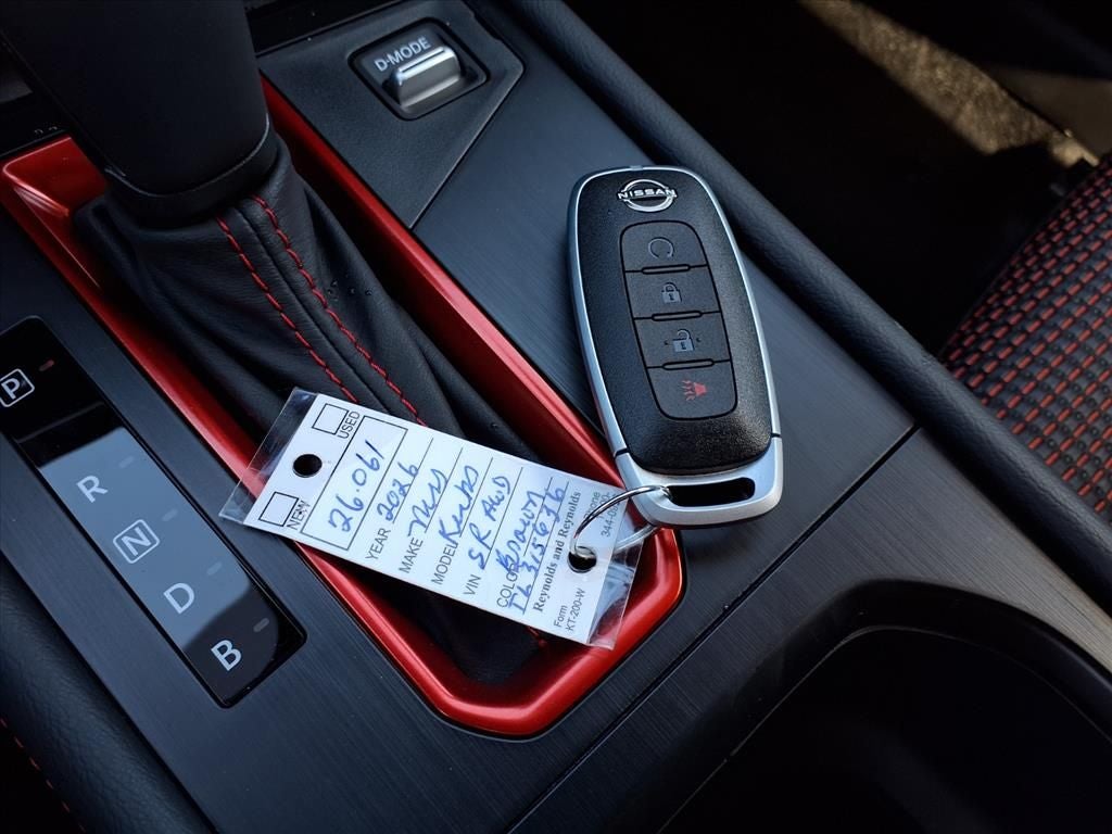 $1,000 off MSRP! Canyon Bronze Metallic 2026 Nissan Kicks SR 2.0L DOHC AWD CVT with Xtronic Cold Weather Package (Heated Front Seats, Heated Mirrors, and Rear Floor Heater Ducts), 17 Alloy Wheels, 19 Alloy Wheels, 4-Wheel Disc Brakes, 6 Speakers, ABS brakes, Air Conditioning, Alloy wheels, AM/FM radio, Auto High-beam Headlights, Automatic temperature control, AWD Cargo Mat, Brake assist, Bumpers: body-color, Carpeted Floor Mats, Crossbars, Delay-off headlights, Door Trim Panel Scuff Plates, Driver door bin, Driver vanity mirror, Dual front impact airbags, Dual front side impact airbags, Electronic Stability Control, Emergency communication system: NissanConnect Services, Exterior Parking Camera Rear, Four wheel independent suspension, Front anti-roll bar, Front Bucket Seats, Front Center Armrest, Front reading lights, Fully automatic headlights, Garage door transmitter: myQ Connected Garage, Illuminated entry, Knee airbag, Leather Shift Knob, Leather steering wheel, Low tire pressure warning, NissanConnect featuring Apple CarPlay and Android Auto, Occupant sensing airbag, Outside temperature display, Overhead airbag, Overhead console, Panic alarm, Passenger door bin, Passenger vanity mirror, Power door mirrors, Power steering, Power windows, Radio data system, Radio: AM/FM/SiriusXM Audio System, Rear anti-roll bar, Rear reading lights, Rear seat center armrest, Rear side impact airbag, Rear window defroster, Rear window wiper, Remote keyless entry, Security system, Speed control, Speed-sensing steering, Splash Guards, Split folding rear seat, Spoiler, Sport Leatherette with Cloth Insert Seat Trim, Sport steering wheel, Steering wheel mounted audio controls, Tachometer, Telescoping steering wheel, Tilt steering wheel, Traction control, Trip computer, Turn signal indicator mirrors, and Variably intermittent wipers.