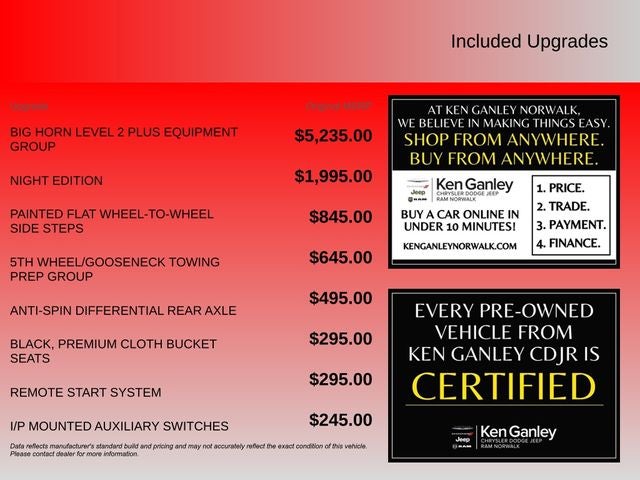 $4,659 off MSRP! Dealer Discount of $3,659 off MSRP Ceramic Gray Clearcoat 6.4L V8 Ram 4WD 2500 Big Horn 8-Speed Automatic Price includes: $1000 - 2026 National Bonus Cash . Exp. 01/05/2026