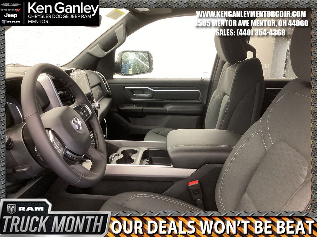 *ParkView Rear Back-Up Camera, 115V Auxiliary Power Outlet, 115V Auxiliary Rear Power Outlet, 12 Touchscreen Display, 2nd Row in Floor Storage Bins, 3 Rear Seat Head Restraints, 4 Way Front Headrests, 4-Wheel Disc Brakes, 400W Inverter, 48V Belt Starter Generator, 4G LTE Wi-Fi Hot Spot, 6 Speakers, 9 Amplified Speakers with Subwoofer, ABS brakes, Accent Color Door Handles, Accent Color Premium Power Mirrors, Accent Color Tailgate Handle, Air Conditioning, Air Conditioning ATC with Dual Zone Control, Alloy wheels, AM/FM radio, Anti-Spin Differential Rear Axle, Apple CarPlay, Apple CarPlay/Android Auto, Auto High-beam Headlights, Auto Power-Folding Mirrors, Auto-Dimming Exterior Driver Mirror, Auto-Dimming Rear-View Mirror, Big Horn Level 2 Equipment Group, Black Exterior Mirrors, Black Exterior Truck Badging, Black Headlamp Bezels, Black Interior Accents, Black Painted Exterior Mirrors Caps, Black Premium Power Mirrors, Black Tail Lamp Bezels, Body Color Fender Flares, Body Color Front Bumper, Body Color Rear Bumper with Step Pads, Brake assist, Bucket Seats, Bumpers: chrome, Center Console Parts Module, Cloth Bucket Seats, Cluster 12 TFT Color Display, Cluster 7.0 TFT Color Display, Compass, Configurable Drive Mode, Connected Travel and Traffic Services, Connectivity - US/Canada, Convex Wide-Angle Exterior Mirror Insert, Delay-off headlights, Deluxe Cloth Bucket Seats, Disassociated Touchscreen Display, Driver door bin, Dual Exhaust with Black Tips, Dual front impact airbags, Dual front side impact airbags, Electronic Stability Control, Exterior Mirrors Courtesy Lamps, Exterior Mirrors with Heating Element, Exterior Mirrors with Supplemental Signals, Front anti-roll bar, Front Bucket Seats, Front Center Armrest w/Storage, Front fog lights, Front License Plate Bracket, Front reading lights, Front Seat Back Map Pockets, Front wheel independent suspension, Full Length Floor Console, Fully automatic headlights, Global Telematics Box Module, Glove Box Lamp, Google Android Auto, GPS Antenna Input, GPS Navigation, Grille Black Surround Black Mesh, HD Radio, Heated door mirrors, Heated Front Seats, Heated Steering Wheel, Illuminated entry, Integrated Center Stack Radio, Integrated Voice Command with Bluetooth®, Leather Wrapped Steering Wheel, LED Dome Lamp with on/Off Switch, LED Footwell Lighting, Low tire pressure warning, Manual Adjust 4-Way Driver Seat, Manual Adjust 4-Way Front Passenger Seat, Manual Folding Exterior Mirrors, Manufacturer's Statement of Origin, Media Hub with 2 Charge Only USBs, MOPAR Front and Rear Rubber Floor Mats, Night Edition, Occupant sensing airbag, Outside temperature display, Overhead airbag, Overhead console, Overhead LED Lamps, Panic alarm, Passenger door bin, Passenger vanity mirror, Power 2-Way Driver Lumbar Adjust, Power Adjust 8-Way Driver Seat, Power Adjustable Pedals, Power door mirrors, Power steering, Power windows, Premium Overhead Console, Quick Order Package 21Z Big Horn, Radio data system, Radio: Uconnect 5 Navigation with 12.0 Display, Radio: Uconnect 5 W with 8.4 Display, RAM Grille Badge - Black, RAM Grille Badge - Chrome, Rear 60/40 Folding Seat, Rear anti-roll bar, Rear Center Armrest, Rear Power Sliding Window, Rear step bumper, Rear Wheelhouse Liners, Rear Window Defroster, Remote keyless entry, Remote Tailgate Release, Security Alarm, SiriusXM Radio Service, SiriusXM with 360L, Speed control, Steering Wheel Mounted Audio Controls, Sun Visors with Illuminated Vanity Mirrors, Supplier Part Tracking (J-1), Tachometer, Telescoping steering wheel, Tilt steering wheel, Traction control, Trailer Brake Control, Trip computer, Universal Garage Door Opener, USB Host Flip, Variably intermittent wipers, Voltmeter, Wheels: 20 x 9.0 Aluminum Painted Clad. PRICING AVAILABLE TO ALL CUSTOMER!!! WE ARE ONE OF OHIO'S LEADING VOLUME DEALERSHIPS COME SEE OUR HUGE SELECTION AND UNMATCHED SAVINGS ONLY AT Price includes: $3500 - 2026 National Retail Bonus Cash . Exp. 03/31/2026