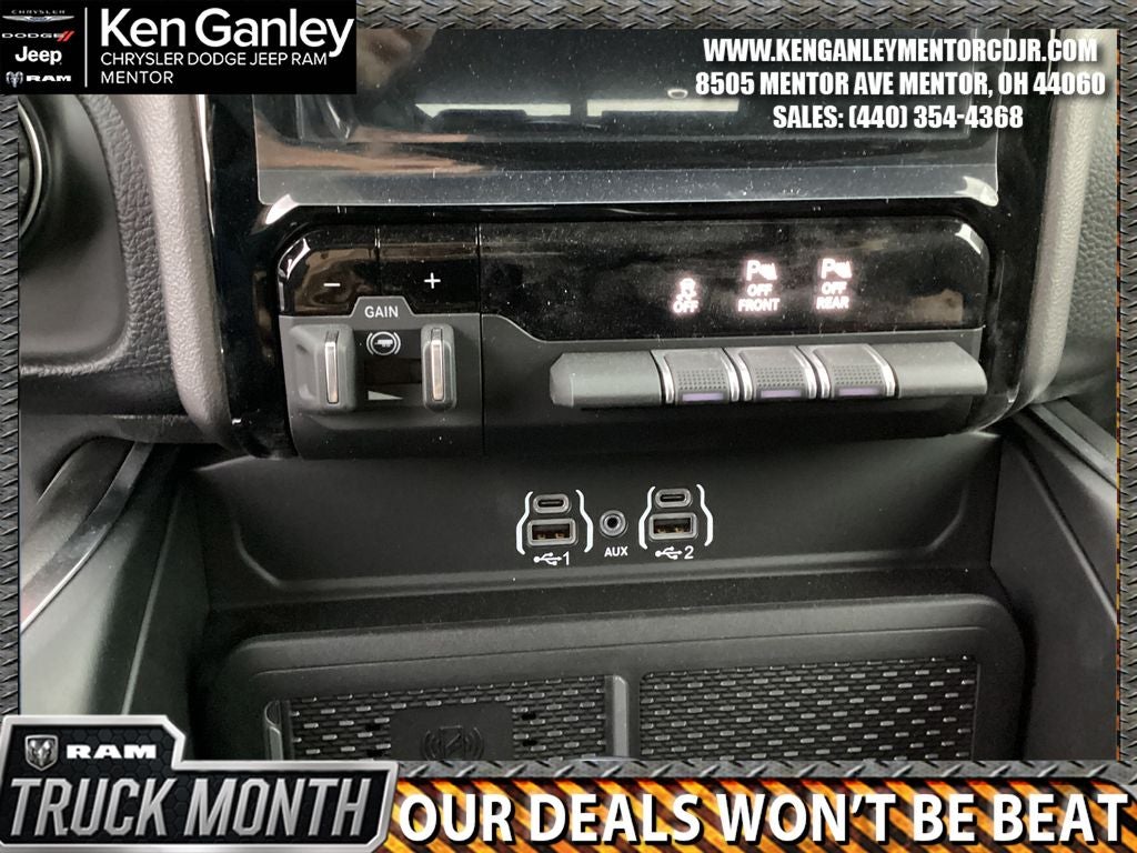 *ParkView Rear Back-Up Camera, 115V Auxiliary Power Outlet, 115V Auxiliary Rear Power Outlet, 12 Touchscreen Display, 2nd Row in Floor Storage Bins, 3 Rear Seat Head Restraints, 4 Way Front Headrests, 4-Wheel Disc Brakes, 400W Inverter, 48V Belt Starter Generator, 4G LTE Wi-Fi Hot Spot, 6 Speakers, 9 Amplified Speakers with Subwoofer, ABS brakes, Accent Color Door Handles, Accent Color Premium Power Mirrors, Accent Color Tailgate Handle, Air Conditioning, Air Conditioning ATC with Dual Zone Control, Alloy wheels, AM/FM radio, Anti-Spin Differential Rear Axle, Apple CarPlay, Apple CarPlay/Android Auto, Auto High-beam Headlights, Auto Power-Folding Mirrors, Auto-Dimming Exterior Driver Mirror, Auto-Dimming Rear-View Mirror, Big Horn Level 2 Equipment Group, Black Exterior Mirrors, Black Exterior Truck Badging, Black Headlamp Bezels, Black Interior Accents, Black Painted Exterior Mirrors Caps, Black Premium Power Mirrors, Black Tail Lamp Bezels, Body Color Fender Flares, Body Color Front Bumper, Body Color Rear Bumper with Step Pads, Brake assist, Bucket Seats, Bumpers: chrome, Center Console Parts Module, Cloth Bucket Seats, Cluster 12 TFT Color Display, Cluster 7.0 TFT Color Display, Compass, Configurable Drive Mode, Connected Travel and Traffic Services, Connectivity - US/Canada, Convex Wide-Angle Exterior Mirror Insert, Delay-off headlights, Deluxe Cloth Bucket Seats, Disassociated Touchscreen Display, Dome Dual LED Reading Lamp, Driver door bin, Dual Exhaust with Black Tips, Dual front impact airbags, Dual front side impact airbags, Dual-Pane Panoramic Sunroof, Electronic Stability Control, Exterior Mirrors Courtesy Lamps, Exterior Mirrors with Heating Element, Exterior Mirrors with Supplemental Signals, Front anti-roll bar, Front Bucket Seats, Front Center Armrest w/Storage, Front fog lights, Front License Plate Bracket, Front reading lights, Front Seat Back Map Pockets, Front wheel independent suspension, Full Length Floor Console, Fully automatic headlights, Global Telematics Box Module, Glove Box Lamp, Google Android Auto, GPS Antenna Input, GPS Navigation, Grille Black Surround Black Mesh, HD Radio, Heated door mirrors, Heated Front Seats, Heated Steering Wheel, Illuminated entry, Integrated Center Stack Radio, Integrated Voice Command with Bluetooth®, Leather Wrapped Steering Wheel, LED Dome Lamp with on/Off Switch, LED Footwell Lighting, Low tire pressure warning, Manual Adjust 4-Way Driver Seat, Manual Adjust 4-Way Front Passenger Seat, Manual Folding Exterior Mirrors, Manufacturer's Statement of Origin, Media Hub with 2 Charge Only USBs, MOPAR Front and Rear Rubber Floor Mats, MyFlexCare Service Plan, Night Edition, Occupant sensing airbag, Outside temperature display, Overhead airbag, Overhead console, Overhead LED Lamps, Panic alarm, Passenger door bin, Passenger vanity mirror, Power 2-Way Driver Lumbar Adjust, Power Adjust 8-Way Driver Seat, Power Adjustable Pedals, Power door mirrors, Power steering, Power windows, Premium Overhead Console, Quick Order Package 21Z Big Horn, Radio data system, Radio: Uconnect 5 Navigation with 12.0 Display, Radio: Uconnect 5 W with 8.4 Display, RAM Grille Badge - Black, RAM Grille Badge - Chrome, Rear 60/40 Folding Seat, Rear anti-roll bar, Rear Center Armrest, Rear Power Sliding Window, Rear step bumper, Rear Wheelhouse Liners, Rear Window Defroster, Remote keyless entry, Remote Tailgate Release, Security Alarm, SiriusXM Radio Service, SiriusXM with 360L, Speed control, Steering Wheel Mounted Audio Controls, Sun Visors with Illuminated Vanity Mirrors, Supplier Part Tracking (J-1), Tachometer, Telescoping steering wheel, Tilt steering wheel, Traction control, Trailer Brake Control, Trip computer, Universal Garage Door Opener, USB Host Flip, Variably intermittent wipers, Voltmeter, Wheels: 20 x 9.0 Aluminum Pain Price includes: $3500 - 2026 National Retail Consumer Cash . Exp. 03/02/2026 $500 - 2026 Great Lakes BC Truck Month Bonus Cash . Exp. 03/02/2026