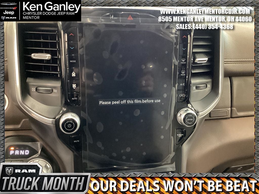 *Heated steering wheel, *ParkView Rear Back-Up Camera, *Ventilated front seats, 10 Speakers, 4-Wheel Disc Brakes, 4G LTE Wi-Fi Hot Spot, ABS brakes, Accent Color Premium Power Mirrors, Active Noise Control System, Adjustable pedals, Air Conditioning, Alloy wheels, AM/FM radio: SiriusXM with 360L, Apple CarPlay/Android Auto, Audio memory, Auto High-beam Headlights, Auto Power-Folding Mirrors, Auto-dimming door mirrors, Auto-Dimming Exterior Driver Mirror, Auto-dimming Rear-View mirror, Automatic temperature control, Black Painted Exterior Mirrors Caps, Body Color Front Bumper, Body Color Rear Bumper with Step Pads, Brake assist, Bumpers: chrome, Chrome Exterior Mirrors, Compass, Connected Travel and Traffic Services, Connectivity - US/Canada, Convex Wide-Angle Exterior Mirror Insert, Delay-off headlights, Dome Dual LED Reading Lamp, Driver door bin, Driver vanity mirror, Dual front impact airbags, Dual front side impact airbags, Dual-Pane Panoramic Sunroof, Electronic Stability Control, Exterior Mirrors Courtesy Lamps, Exterior Mirrors with Heating Element, Exterior Mirrors with Memory, Exterior Mirrors with Supplemental Signals, Front anti-roll bar, Front Bucket Seats, Front Center Armrest w/Storage, Front dual zone A/C, Front fog lights, Front License Plate Bracket, Front reading lights, Front wheel independent suspension, Fully automatic headlights, Garage door transmitter, GPS Navigation, Grille Surround 3 Body Color Tex 4 Chrome, Heated door mirrors, Heated front seats, Heated rear seats, Illuminated entry, Integrated Center Stack Radio, Integrated Voice Command with Bluetooth®, Laramie Level 1 Equipment Group, Laramie Preferred Package, Leather steering wheel, Leather Trimmed Bucket Seats, LED Dome/Reading Lamp, Low tire pressure warning, Manufacturer's Statement of Origin, Memory seat, MOPAR Front and Rear Rubber Floor Mats, MyFlexCare Service Plan, Navigation System, Occupant sensing airbag, Off-Road Information Pages, Outside temperature display, Overhead airbag, Overhead console, Panic alarm, Passenger door bin, Passenger vanity mirror, Pedal memory, Power Deployable Running Boards, Power door mirrors, Power driver seat, Power passenger seat, Power steering, Power windows, Quick Order Package 27H Laramie, Radio data system, Radio: Uconnect 5 Navigation with 12.0 Display, Rain Sensitive Windshield Wipers, RAM Grille Badge - Chrome, Rear anti-roll bar, Rear reading lights, Rear seat center armrest, Rear step bumper, Rear Wheelhouse Liners, Remote keyless entry, Remote Tailgate Release, Security system, SiriusXM Radio Service, SiriusXM with 360L, Speed control, Split folding rear seat, Steering wheel mounted audio controls, Tachometer, Telescoping steering wheel, Tilt steering wheel, Tow Hooks, Traction control, Trailer Brake Control, Trip computer, Turn signal indicator mirrors, USB Host Flip, Variably intermittent wipers, Voltmeter, Wheels: 20 x 9 Premium Paint/Polish. PRICING AVAILABLE TO ALL CUSTOMER!!! WE ARE ONE OF OHIO'S LEADING VOLUME DEALERSHIPS COME SEE OUR HUGE SELECTION AND UNMATCHED SAVINGS ONLY AT GANLEY VILLAGE CHRYSLER DODGE JEEP RAM FIAT OF PAINESVILLE, OH 44077.