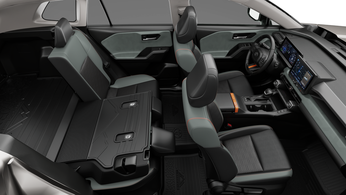 - 60/40 split reclining fold-flat rear seat with center armrest and cup holders
