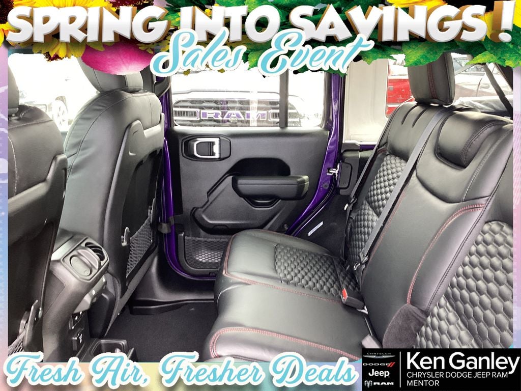 *ParkView Rear Back-Up Camera, 12.3 Touchscreen Display, 4-Wheel Disc Brakes, 4.10 Rear Axle Ratio, 4G LTE Wi-Fi Hot Spot, 8 Speakers, ABS brakes, Air Conditioning, Alloy wheels, Alpine Premium Audio System, AM/FM radio: SiriusXM with 360L, Apple CarPlay, Apple CarPlay/Android Auto, Auto-Dimming Rear-View Mirror, Automatic temperature control, Aux Battery, Auxiliary Switches, Black MOPAR Stitched Leather, Body Color Rubicon Highline Flare, Brake assist, Class II Receiver Hitch, Cloth Low-Back Bucket Seats, Compass, Connected Travel and Traffic Services, Connectivity - US/Canada, Convenience Group, Delay-off headlights, Driver door bin, Driver vanity mirror, Dual front impact airbags, Dual front side impact airbags, Electronic Stability Control, Emergency communication system: Jeep Connect, For More Info, Call 800-643-2112, Front anti-roll bar, Front Bucket Seats, Front Center Armrest w/Storage, Front dual zone A/C, Front fog lights, Front License Plate Bracket, Front reading lights, Fully automatic headlights, Google Android Auto, GPS Navigation, HD Radio, Heated door mirrors, Heated Front Seats, Heated Steering Wheel, Illuminated entry, Integrated Center Stack Radio, Integrated Off-Road Camera, Integrated roll-over protection, Integrated Voice Command with Bluetooth®, Low tire pressure warning, MOPAR All-Weather Floor Mats, Myflexcare Service Plan, Non-Lock Fuel Cap Without Discriminator, Occupant sensing airbag, Outside temperature display, Overhead airbag, Panic alarm, Passenger door bin, Passenger vanity mirror, Performance Hood, Performance Suspension, Power door mirrors, Power steering, Power Top Quarter Window Storage Bag, Power windows, Quick Order Package 22R Rubicon, Radio data system, Radio: Uconnect 5 Navigation with 12.3 Display, Radio: Uconnect 5 with 12.3 Display, Rear anti-roll bar, Rear reading lights, Rear Window Defroster, Rear Window Wiper/Washer, Remote keyless entry, Removable Rear Quarter Windows, Security system, SiriusXM Radio Service, SiriusXM with 360L, Sky One-Touch Power Top, Speed control, Split folding rear seat, Steel Performance Hood Package, Steering wheel mounted audio controls, Stop-Start Dual Battery System, Tachometer, Technology Group, Telescoping steering wheel, Tilt steering wheel, Traction control, Trip computer, Universal Garage Door Opener, Variably intermittent wipers, Voltmeter, Wheels: 17 x 7.5 Machined/Painted Black. PRICING AVAILABLE TO ALL CUSTOMER!!! WE ARE ONE OF OHIO'S LEADING VOLUME DEALERSHIPS COME SEE OUR HUGE SELECTION AND UNMATCHED SAVINGS ONLY AT GANLEY VILLAGE CHRYSLER DODGE JEEP RAM FIAT OF PAINESVILLE, OH 44077.