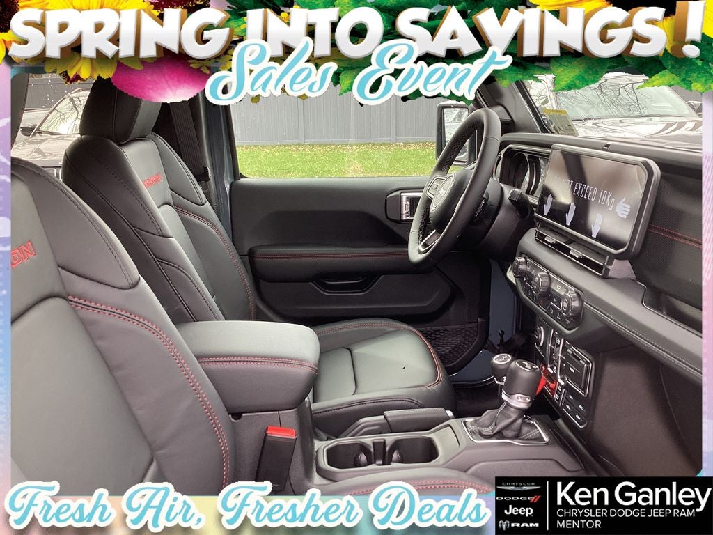 *ParkView Rear Back-Up Camera, 12.3 Touchscreen Display, 4-Wheel Disc Brakes, 4.10 Rear Axle Ratio, 4G LTE Wi-Fi Hot Spot, 8 Speakers, ABS brakes, Air Conditioning, Alloy wheels, Alpine Premium Audio System, AM/FM radio: SiriusXM with 360L, Apple CarPlay, Apple CarPlay/Android Auto, Auto High Beam Headlamp Control, Auto-Dimming Rear-View Mirror, Automatic temperature control, Aux Battery, Auxiliary Switches, Blind Spot and Cross Path Detection, Body Color Rubicon Highline Flare, Brake assist, Class II Receiver Hitch, Cloth Low-Back Bucket Seats, Compass, Connected Travel and Traffic Services, Connectivity - US/Canada, Convenience Group, Delay-off headlights, Driver door bin, Driver vanity mirror, Dual front impact airbags, Dual front side impact airbags, Electronic Stability Control, Emergency communication system: Jeep Connect, For More Info, Call 800-643-2112, Front anti-roll bar, Front Bucket Seats, Front Center Armrest w/Storage, Front dual zone A/C, Front fog lights, Front License Plate Bracket, Front reading lights, Fully automatic headlights, Google Android Auto, GPS Navigation, HD Radio, Heated door mirrors, Heated Front Seats, Heated Steering Wheel, Illuminated entry, Integrated Center Stack Radio, Integrated Off-Road Camera, Integrated roll-over protection, Integrated Voice Command with Bluetooth®, Low tire pressure warning, MOPAR All-Weather Floor Mats, MOPAR Stainless Door Sill Guards, Myflexcare Service Plan, Non-Lock Fuel Cap Without Discriminator, Occupant sensing airbag, Outside temperature display, Overhead airbag, Panic alarm, ParkSense Rear Park Assist System, Passenger door bin, Passenger vanity mirror, Performance Hood, Performance Suspension, Power door mirrors, Power steering, Power Top Quarter Window Storage Bag, Power windows, Quick Order Package 22R Rubicon, Radio data system, Radio: Uconnect 5 Navigation with 12.3 Display, Radio: Uconnect 5 with 12.3 Display, Rear anti-roll bar, Rear reading lights, Rear Window Defroster, Rear Window Wiper/Washer, Remote keyless entry, Removable Rear Quarter Windows, Safety Group, Security system, SiriusXM Radio Service, SiriusXM with 360L, Sky One-Touch Power Top, Speed control, Split folding rear seat, Steel Performance Hood Package, Steering wheel mounted audio controls, Stop-Start Dual Battery System, Tachometer, Technology Group, Telescoping steering wheel, Tilt steering wheel, Traction control, Trip computer, Universal Garage Door Opener, Variably intermittent wipers, Voltmeter, Wheels: 17 x 7.5 Machined/Painted Black. PRICING AVAILABLE TO ALL CUSTOMER!!! WE ARE ONE OF OHIO'S LEADING VOLUME DEALERSHIPS COME SEE OUR HUGE SELECTION AND UNMATCHED SAVINGS ONLY AT GANLEY VILLAGE CHRYSLER DODGE JEEP RAM FIAT OF PAINESVILLE, OH 44077.