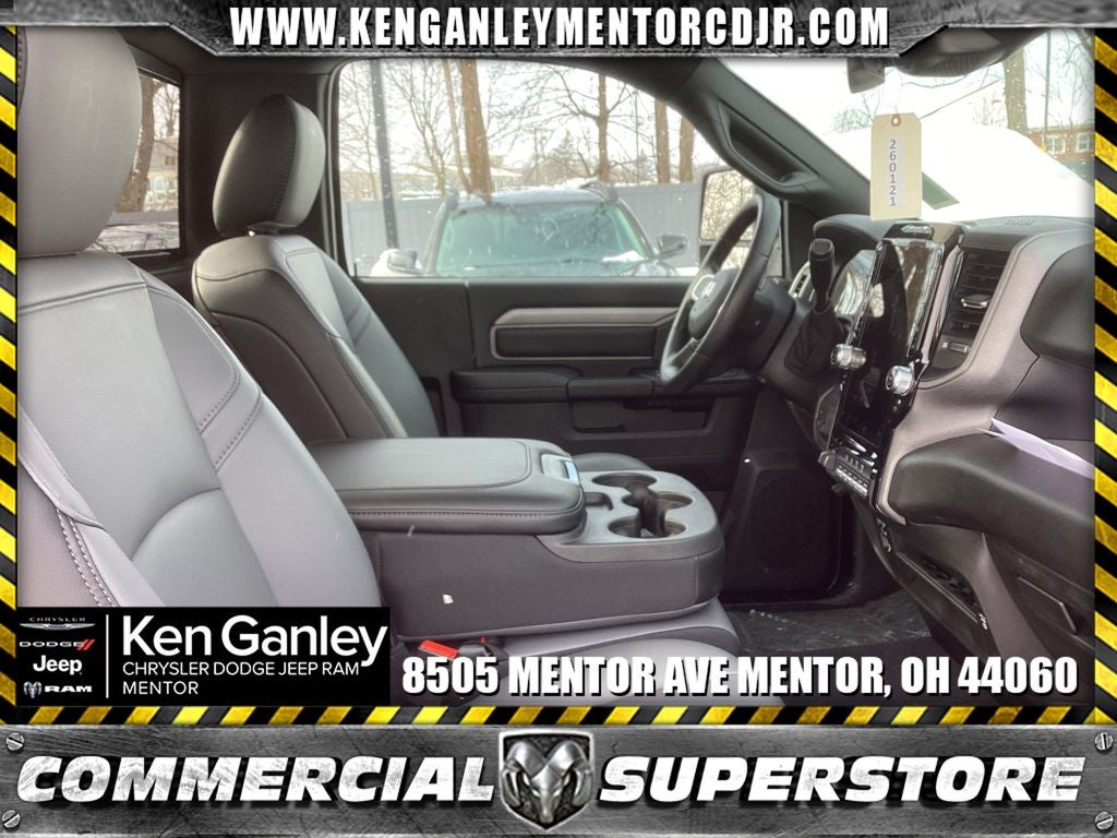 *ParkView Rear Back-Up Camera, 115-Volt Auxiliary Front Power Outlet, 12 Touchscreen Display, 3.73 Axle Ratio, 4 Speakers, 4 Way Front Headrests, 4-Wheel Disc Brakes, 40/20/40 Split Bench Seat, 400W Inverter, 4G LTE Wi-Fi Hot Spot, 6 Speakers, ABS brakes, Add Vinyl Seat, Air Conditioning, Air Conditioning with Dual Zone Control, Alexa Built-in, AM/FM radio: SiriusXM, Anti-Spin Differential Rear Axle, Apple CarPlay, Apple CarPlay/Android Auto, Auto-Dimming Rear-View Mirror, Bed Convenience Group, Black Exterior Mirrors, Black Wheel Center Hub, Brake assist, Carpet Floor Covering, Clearance Lamps, Cloth 40/20/40 Bench Seat, Commercial Features Package, Compass, Connected Travel and Traffic Services, Connectivity - US/Canada, Convenience Group, Dash Pass Thru Wire Circuits, Delay-off headlights, Disassociated Touchscreen Display, Driver door bin, Dual Alternators Rated At 400 Amps, Dual front impact airbags, Dual front side impact airbags, Electronic Stability Control, Emergency Vehicle Alert System (EVAS), Exterior 115V AC Outlet, Exterior Mirrors Courtesy Lamps, Exterior Mirrors with Heating Element, Exterior Mirrors with Supplemental Signals, For Details Visit DriveUconnect.com, For More Info Call 800-643-2112, Front 1-Touch Down Power Windows, Front anti-roll bar, Front Armrest with Cupholders, Front Center Armrest w/Storage, Front Floor Mats, Front fog lights, Front License Plate Bracket, Front reading lights, Fully automatic headlights, Global Telematics Box Module, Google Android Auto, GPS Antenna Input, GPS Navigation, HD Radio, Heavy Duty Vinyl 40/20/40 Split Bench Seat, Illuminated entry, Instrument Panel Mounted Auxiliary Switches, Integrated Voice Command with Bluetooth®, LED Bed Lighting, Low tire pressure warning, Manual Adjust 4-Way Driver Seat, Manual Adjust 4-Way Front Passenger Seat, Manual Folding Exterior Mirrors, Manuarl Telescoping Mirrors, Manufacturer's Statement of Origin, Mirror Running Lights, Mopar Black Tubular Side Steps, MOPAR Front Rubber Floor Mats, MOPAR Spray in Bedliner, MyFlexCare Service Plan, Occupant sensing airbag, Off-Road Info Pages, Outside temperature display, Overhead airbag, Overhead console, ParkSense Front/Rear Park Assist System, Passenger door bin, Passenger vanity mirror, Power Adjust Mirrors, Power Heated Folding Telescopic Mirrors, Power steering, Power-Adjustable Convex Aux Mirrors, Quick Order Package 2UA Tradesman, Radio data system, Radio: Uconnect 5 Navigation with 12.0 Display, Radio: Uconnect 5 with 8.4 Display, Rear anti-roll bar, Rear Sliding Window, Rear step bumper, Rear Wheelhouse Liners, Remote Keyless Entry, Remote USB Port - Charge Only, Selectable Tire Fill Alert, SiriusXM Radio Service, SiriusXM with 360L, Speed control, Speed Sensitive Power Locks, Tachometer, Tilt steering wheel, Tinted Acoustic Windshield Glass, Traction control, Tradesman Level 1 Equipment Group, Trailer Tow Pages, Upgraded Door Trim Panel, Variably intermittent wipers, Voltmeter, Wheels: 17 x 7.5 Black Steel Styled, Wheels: 18 x 8.0 Black Painted Steel. PRICING AVAILABLE TO ALL CUSTOMER!!! WE ARE ONE OF OHIO'S LEADING VOLUME DEALERSHIPS COME SEE OUR HUGE SELECTION AND UNMATCHED SAVINGS ONLY AT GANLEY VILLAGE CHRYSLER DODGE JEEP RAM FIAT OF PAINESVILLE, OH 44077.