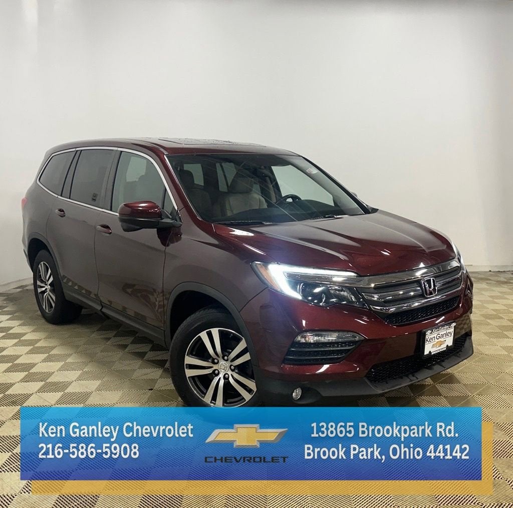 Red Metallic 2018 Honda Pilot EX-L AWD 6-Speed Automatic 3.5L V6 24V SOHC i-VTEC Heated Leather Seats, Navigation, Power driver seat, Power Liftgate, Power moonroof, Radio: AM/FM Audio System, SiriusXM Radio.Recent Arrival! 18/26 City/Highway MPGAwards:* 2018 KBB.com Best Buy Awards * 2018 KBB.com Best Family Cars * 2018 KBB.com Brand Image Awards * 2018 KBB.com 10 Most Awarded BrandsKelley Blue Book Brand Image Awards are based on the Brand Watch(tm) study from Kelley Blue Book Market Intelligence. Award calculated among non-luxury shoppers. For more information, visit www.kbb.com. Kelley Blue Book is a registered trademark of Kelley Blue Book Co., Inc.For your peace of mind we have included over 50 photos, for you to judge the condition yourself. As you do your comparison shopping, you will see Ganley Chevrolet offers some of the best values in the market. We will provide you a Carfax, Comprehensive Vehicle Inspection, and how we arrived at the price. We may not be the lowest, but if you want to know who is, we will show you that too. Call or Stop by Ganley Chevrolet to schedule a test drive today. Serving the Greater Cleveland Area. Out of town buyer's free pick-up at the airport. We can help arrange delivery right to your front door too!