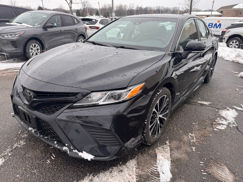 Certified. 2018 Midnight Black Metallic Toyota Camry SE LOCAL TRADE, Camry SE, 4D Sedan, 8-Speed Automatic, Black w/Fabric Seat Trim, 4-Wheel Disc Brakes, ABS brakes, Automatic temperature control, Brake assist, Convenience Package, Delay-off headlights, Dual front impact airbags, Dual front side impact airbags, Electronic Stability Control, Exterior Parking Camera Rear, Four wheel independent suspension, Illuminated entry, Knee airbag, Leather Shift Knob, Low tire pressure warning, Overhead airbag, Panic alarm, Power door mirrors, Power driver seat, Power steering, Power windows, Push Button Starting System, Radio: Entune 3.0 Audio, Rear side impact airbag, Rear window defroster, Remote keyless entry, Security system, Speed control, Speed-sensing steering, Steering wheel mounted audio controls, Telescoping steering wheel, Tilt steering wheel, Traction control, Variably intermittent wipers, Wheels: 8.0J x 18 Black Machined-Finish Alloy. Priced below KBB Fair Purchase Price! 28/39 City/Highway MPG Thank you for taking the time to look at this stunning 2018 Toyota Camry. As you do your comparison shopping, you will see Ken Ganley Ford Parma offers some of the best values in the market. We will provide you a Carfax, Comprehensive Vehicle Inspection, and how we arrived at the price. We may not always be the lowest but if you want to know who is; we will show you that too. Call or stop by Ken Ganley Ford located in Parma Ohio to schedule a test drive today.