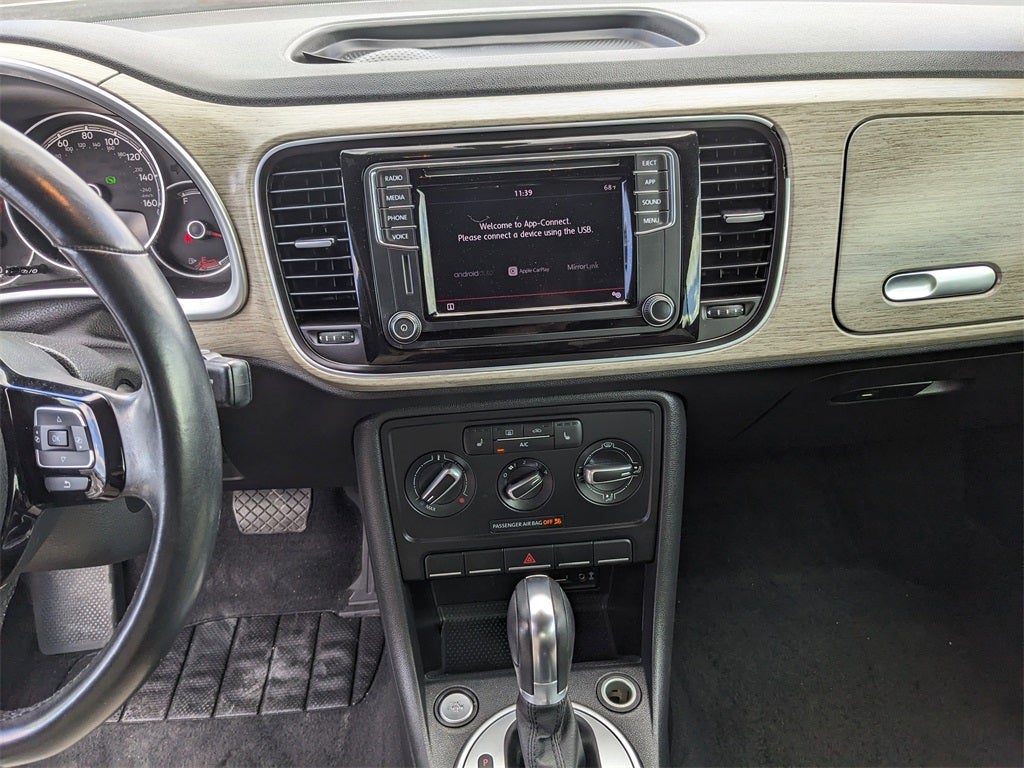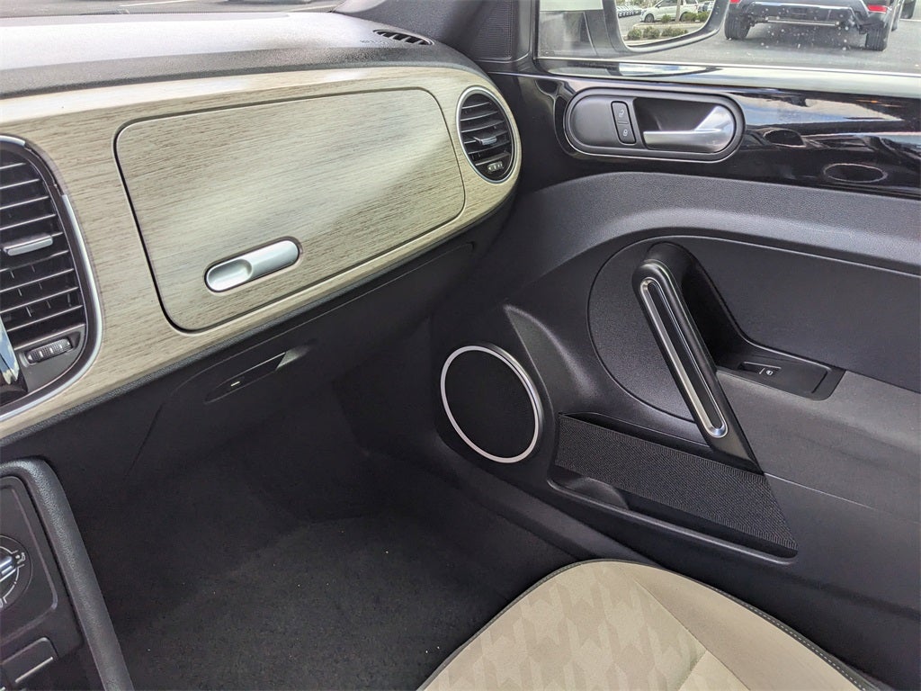 2018 Pure White/Beige Roof Volkswagen Beetle 2.0T S Beige Leatherette, ABS brakes, Alloy wheels, Electronic Stability Control, Heated door mirrors, Heated Front Comfort Seats, Heated front seats, Illuminated entry, Low tire pressure warning, Remote keyless entry, Traction control, 4-Wheel Disc Brakes, 8 Speakers, Air Conditioning, AM/FM radio, Bodyside moldings, Brake assist, Bumpers: body-color, CD player, Convertible roof lining, Driver door bin, Driver vanity mirror, Dual front impact airbags, Dual front side impact airbags, Exterior Parking Camera Rear, Four wheel independent suspension, Front anti-roll bar, Front Bucket Seats, Front Center Armrest w/Storage, Front reading lights, Glass rear window, Integrated roll-over protection, Leather Shift Knob, Leather steering wheel, Occupant sensing airbag, Outside temperature display, Overhead console, Panic alarm, Passenger door bin, Passenger vanity mirror, Power convertible roof, Power door mirrors, Power steering, Power windows, Radio data system, Radio: AM/FM/HD 5 Touchscreen w/CD Player, Rear anti-roll bar, Rear window defroster, Speed control, Speed-sensing steering, Split folding rear seat, Spoiler, Steering wheel mounted audio controls, Tachometer, Telescoping steering wheel, Tilt steering wheel, Trip computer, Turn signal indicator mirrors, V-Tex Leatherette Seating Surfaces, Variably intermittent wipers, Wheels: 16 Whirl Alloy, Beige Leatherette, ABS brakes, Alloy wheels, Electronic Stability Control, Heated door mirrors, Heated Front Comfort Seats, Heated front seats, Illuminated entry, Low tire pressure warning, Remote keyless entry, Traction control.