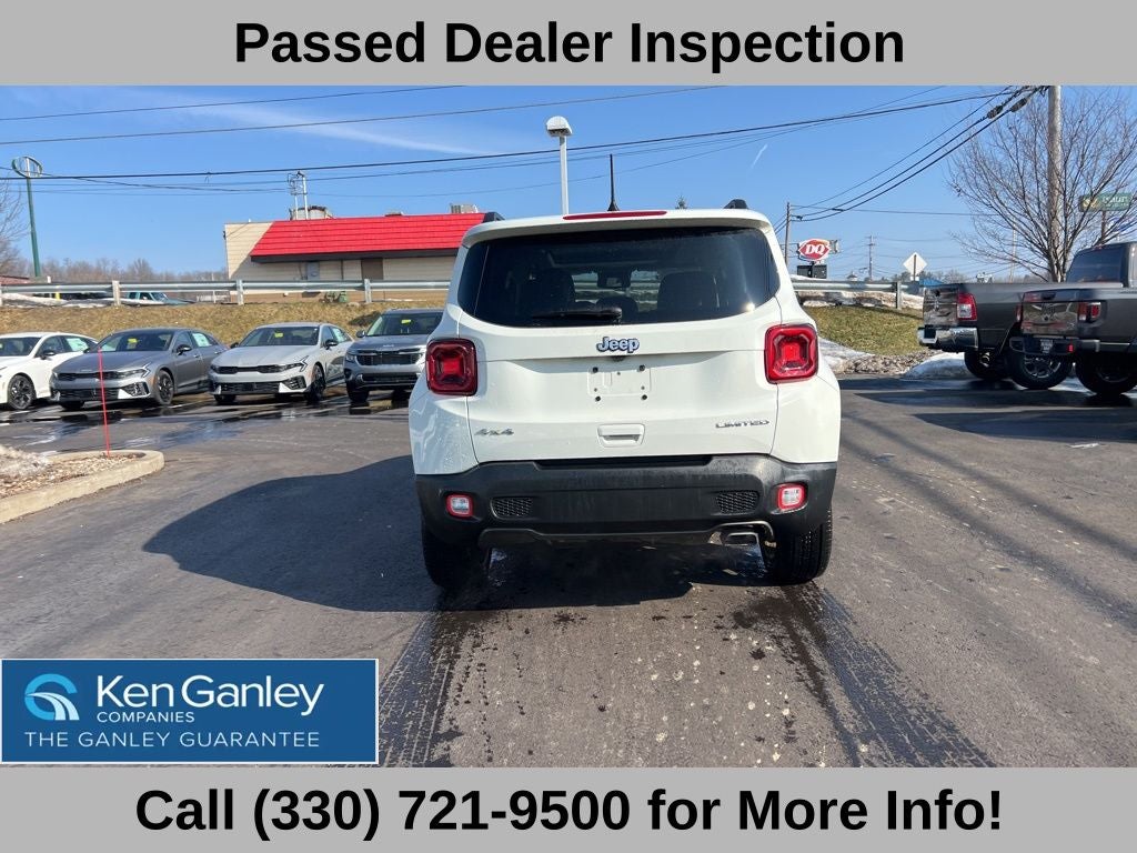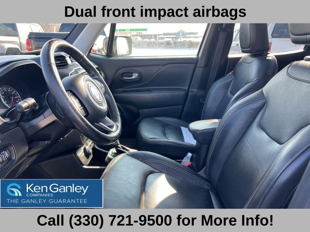 2019 Alpine White Clearcoat Jeep Renegade Limited CARFAX One-Owner. Leather, Sunroof/Moonroof, Remote Start, Heated Seats, New Tires, Alloy Wheels, Recent Oil Change, Fully Detailed, Passed Dealer Inspection, 4WD, 4-Wheel Disc Brakes, 6 Speakers, ABS brakes, Air Conditioning, Alloy wheels, AM/FM radio: SiriusXM, Anti-whiplash front head restraints, Apple CarPlay/Android Auto, Auto-dimming Rear-View mirror, Automatic temperature control, Bi-Function LED Projector Headlamps, Brake assist, Dedicated LED Daytime Running Lamps, Delay-off headlights, Dual front impact airbags, Dual front side impact airbags, Dual-Pane Panoramic Power Sunroof, Electronic Stability Control, Four wheel independent suspension, Front anti-roll bar, Front Bucket Seats, Front dual zone A/C, Fully automatic headlights, Heated front seats, Heated steering wheel, Illuminated entry, Knee airbag, Leather Shift Knob, Leather steering wheel, Leather Trimmed Bucket Seats, LED Cornering Fog Lamps, LED Lighting Group, LED Taillamps, Low tire pressure warning, Normal Duty Suspension, Occupant sensing airbag, Outside temperature display, Overhead airbag, Panic alarm, ParkView Rear Back-Up Camera, Passenger door bin, Passenger vanity mirror, Power driver seat, Power steering, Power windows, Quick Order Package 22D, Radio: Uconnect 4 w/7 Display, Rain sensing wipers, Rear anti-roll bar, Rear window defroster, Remote keyless entry, Speed control, Steering wheel mounted audio controls, Stop-Start Multiple VSM System, Tachometer, Telescoping steering wheel, Tilt steering wheel, Traction control, Trip computer, Variably intermittent wipers, Voltmeter.