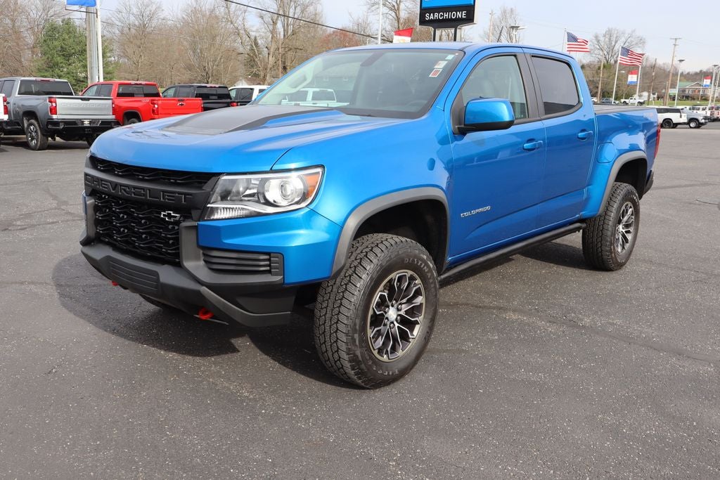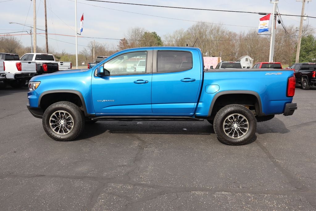 ZR2! 4X4! V6! Leather Heated Seats! Bose Audio! Navi! Wireless Charging! Remote Start! Clean CARFAX! 2021 Chevrolet Colorado ZR2 4D Crew Cab Bright Blue Metallic V6 8-Speed Automatic 4WD 2 USB Data Ports w/SD Card Reader, 3.42 Rear Axle Ratio, Apple CarPlay/Android Auto, Automatic temperature control, Black Rear Bumpers, Black Spray-On Bedliner w/Chevrolet Logo, Bose Premium 7-Speaker Audio System Feature, Chevrolet Performance Black Exhaust Tip (LPO), Driver 6-Way Power Seat Adjuster, Driver-Selectable Full-Locking Front Differential, Driver-Selectable Full-Locking Rear Differential, Electronic Stability Control, Exterior Parking Camera Rear, Fully automatic headlights, Heated door mirrors, Heated Driver & Front Passenger Seats, Heated steering wheel, Heavy-Duty Trailering Package, Hitch Guidance, Integrated Trailer Brake Controller, Leather-Appointed Seat Trim, Navigation System, Power door mirrors, Power Driver Lumbar Control Seat Adjuster, Power Passenger Lumbar Control Seat Adjuster, Power windows, Preferred Equipment Group 4ZR, Radio: Chevrolet Infotainment 3 Plus System w/Navi, Rear step bumper, Rear window defroster, Remote keyless Entry, Speed control, Telescoping steering wheel, Tilt steering wheel, Tow/Haul Mode, Traction control, Wheels: 17 x 8 Graphite & Oxide Gold Aluminum, ZR2 Off-Road Package.