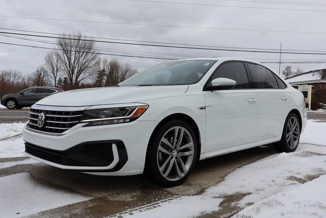Clean CARFAX. Pure White 2021 Volkswagen Passat 2.0T R-Line FWD 6-Speed Automatic with Tiptronic 2.0L I4 TSI Turbocharged Heated Front Comfort Seats, Navigation System, Power moonroof, Wheels: 19 x 8J 5-Spoke 2-Tone Machined Alloy.