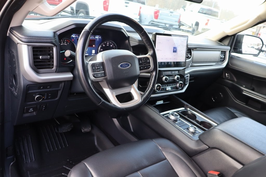 XLT! 4WD! One-Owner! 3rd Row Seating! Heated/Vented Seats! Navi! Power Sunroof! Wireless Charging! Remote Start! Clean CARFAX! 2022 Ford Expedition Max XLT 4D Sport Utility Dark Matter Metallic EcoBoost 3.5L V6 GTDi DOHC 24V Twin Turbocharged 10-Speed Automatic 4WD 110V/150W AC Power Outlet, 2nd Row Power-Folding Captain's Chairs, 3rd row seats: split-bench, 3rd Row Vinyl Power-Folding Head Restraints, 4-Door Intelligent Access (Lock/Unlock), Accent Color Painted Rear Bumper, ActiveX-Trimmed 1st & 2nd Row Seats, Advanced Security Pack, Ambient Lighting, Auto Start-Stop Removal, Bright Chrome Plated Accent Platform Running Boards, Bumpers: body-color, Electronic Stability Control, Equipment Group 202A High Package, Exterior Parking Camera Rear, Heated Steering Wheel, Heated/Ventilated Front Seats, Leather steering wheel, Navigation system: Connected Navigation, Panoramic Vista Roof, Power Liftgate, Power Tilt/Telescopic Steering Wheel w/Memory, Power windows, Power-Adjustable Pedals w/Memory, Power-Folding Sideview Mirrors w/Autofold, Rear window defroster, Rear window wiper, Remote Start, SecuriCode Keyless Entry Keypad, Speed control, Spoiler, Traction control, Tri-Zone Electronic Temp Control, Wheels: 20 6-Spoke Gloss Black-Painted, Wireless Charging Pad.