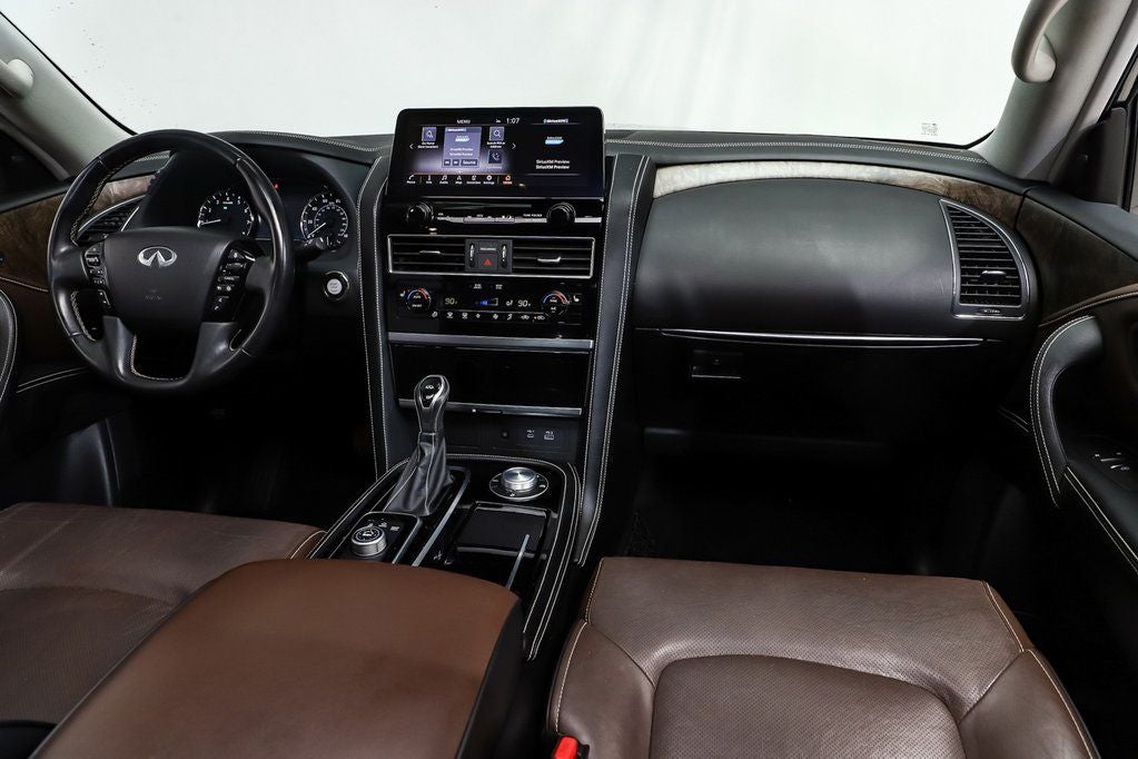 2022 INFINITI QX80 Premium Select Black Obsidian - Third Row Seating, - Sunroof, - Navigation, - Leather Seats, 3rd row seats: split-bench, All-Season Floor Mats, All-Season Package, Cargo Package, Cargo Protector, Console Net, First-Aid Kit, High-Density Non-Slip Rear Cargo Carpet, INFINITI Radiant Illuminated Kick Plates, Navigation system: INFINITI InTouch Navigation, Nylon-Cord Cargo Net, Power Liftgate, Power moonroof, Premium Select Truffle Brown Interior, Split Bench Seat Package, Wheels: 22 x 8.0 Dark Cast Chrome Aluminum-Alloy. CARFAX One-Owner. Clean CARFAX.