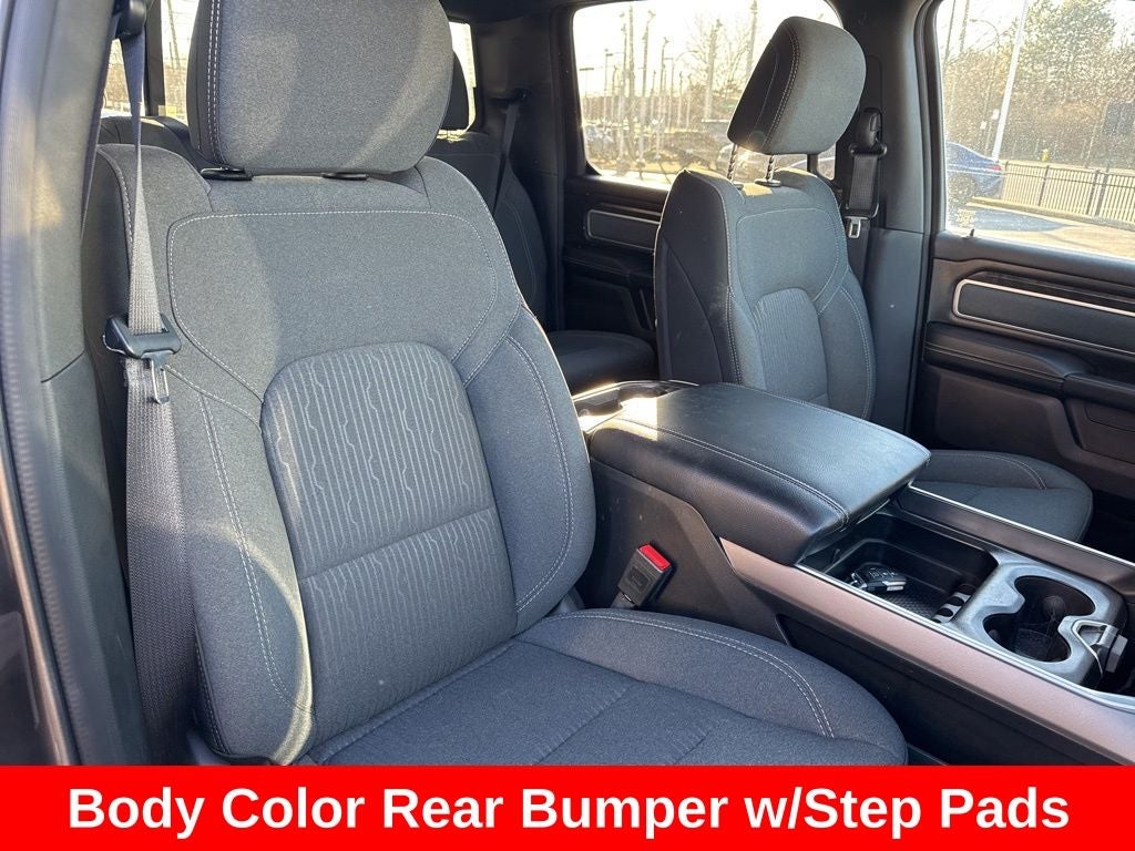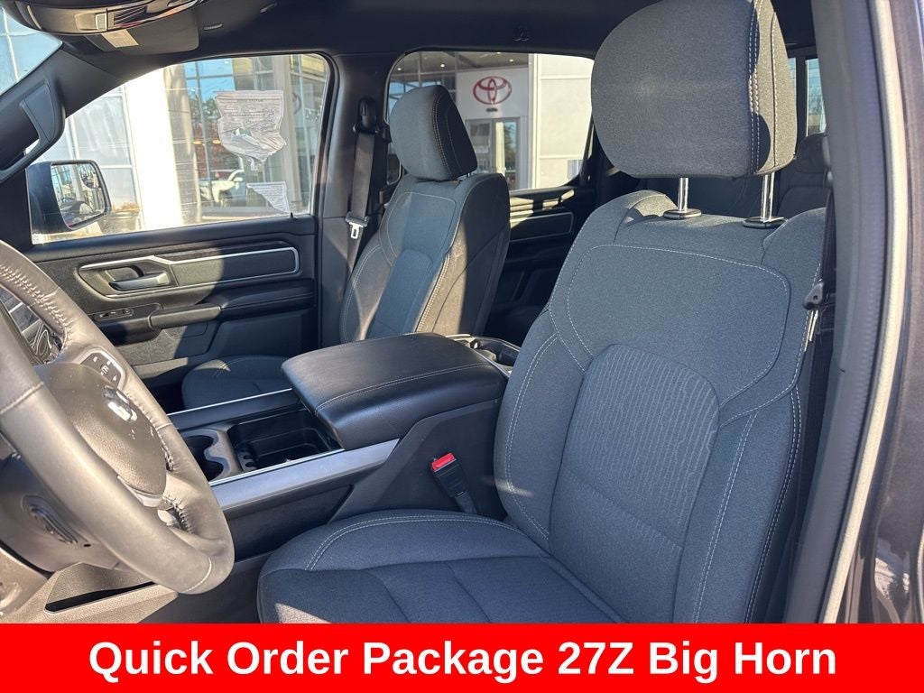 2022 Granite Crystal Metallic Clearcoat Ram 1500 Big Horn/Lone Star 4WD This Ram 1500 has many features and is well equipped including. Navigation System / GPS, AWD/4X4/4WD, Heated Seats, Backup Camera, Keyless Access with Push Button Start, Automatic Headlights, Apple CarPlay, Android Auto, Bluetooth® Hands-Free, 115V Auxiliary Power Outlet, 2nd Row In Floor Storage Bins, 3 Rear Seat Head Restraints, 4 Way Front Headrests, 4G LTE Wi-Fi Hot Spot, 8.4 Touchscreen Display, Air Conditioning ATC w/Dual Zone Control, All Plant-Installed Decals, Apple CarPlay, Auto-Dimming Exterior Driver Mirror, Auto-Dimming Rear-View Mirror, Big Horn Badge, Big Horn Level 2 Equipment Group, Black Exterior Mirrors, Black Interior Accents, Black Premium Power Mirrors, Bluetooth® Handsfree Phone & Audio, Body Color Exterior Mirrors, Body Color Front Bumper, Body Color Premium Power Mirrors, Body Color Rear Bumper w/Step Pads, Bridgestone Brand Tires, Bucket Seats, Class IV Receiver Hitch, Cluster 7.0 TFT Color Display, Connectivity - US/Canada, Convex Wide-Angle Mirror Insert, Delete LED Lamp - Floor Console Bin, Deluxe Cloth Bucket Seats, Exterior Mirrors Courtesy Lamps, Exterior Mirrors w/Heating Element, Exterior Mirrors w/Supplemental Signals, For Details, Visit DriveUconnect.com, Front Seat Back Map Pockets, Full Length Floor Console, Global Telematics Box Module (TBM), Glove Box Lamp, Google Android Auto, GPS Antenna Input, GPS Navigation, Heated Front Seats, Heated Steering Wheel, Integrated Center Stack Radio, Manual Adjust 4-Way Front Passenger Seat, Media Hub w/2 Charge Only USBs, ParkSense Front/Rear Park Assist w/Stop, Power 2-Way Driver Lumbar Adjust, Power 8-Way Driver Seat, Power Adjustable Pedals, Power-Folding Mirrors, Quick Order Package 27Z Big Horn, Radio: Uconnect 5 W w/8.4 Display, Rear Center Armrest, Rear Dome w/On/Off Switch Lamp, Rear Power Sliding Window, Rear Window Defroster, Remote Start System, Security Alarm, SiriusXM Radio Service, SiriusXM Satellite Radio, Sport Appearance Package, Sport Decal, Sun Visors w/Illuminated Vanity Mirrors, USB Host Flip.