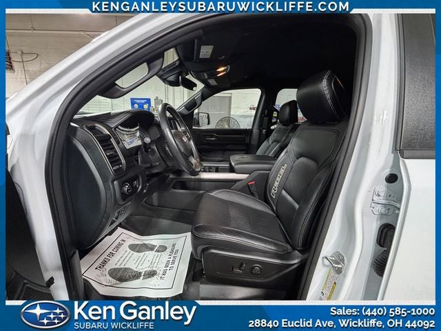 Ram 1500 Rebel 2022 Bright White Clearcoat Newly Detailed, 2nd Row In Floor Storage Bins, 3.92 Rear Axle Ratio, 4 Way Front Headrests, 4-Wheel Disc Brakes, 48V Belt Starter Generator, 4G LTE Wi-Fi Hot Spot, 6 Speakers, 9 Amplified Speakers w/Subwoofer, ABS brakes, Air Conditioning, Alloy wheels, AM/FM radio: SiriusXM, Apple CarPlay, Auto-Dimming Exterior Driver Mirror, Auto-dimming Rear-View mirror, Black Exterior Mirrors, Brake assist, Bucket Seats, Cloth/Vinyl Low Back Bucket Seats, Comfort/Convenience Group, Compass, Convex Wide-Angle Mirror Insert, Delay-off headlights, Driver door bin, Dual front impact airbags, Dual front side impact airbags, Electronic Stability Control, Emergency communication system: SiriusXM Guardian, Exterior Mirrors Courtesy Lamps, Exterior Mirrors w/Heating Element, Exterior Mirrors w/Supplemental Signals, Foam Bottle Insert (Door Trim Panel), For Details, Visit DriveUconnect.com, Front anti-roll bar, Front Bucket Seats, Front Center Armrest w/Storage, Front fog lights, Front License Plate Bracket, Front reading lights, Front Seat Back Map Pockets, Front wheel independent suspension, Full Length Upgraded Floor Console, Fully automatic headlights, Global Telematics Box Module (TBM), GPS Antenna Input, Grille Surround 2 Black Texture 3 Black, Heated door mirrors, Heated Front Seats, Heated Second Row Seats, Heated Steering Wheel, Illuminated entry, Integrated Voice Command w/Bluetooth®, Leather steering wheel, Low tire pressure warning, Night Edition, Occupant sensing airbag, Outside temperature display, Overhead airbag, Overhead console, Panic alarm, ParkView Rear Back-Up Camera, Passenger door bin, Passenger vanity mirror, Power 2-Way Driver Lumbar Adjust, Power 8-Way Driver & Passenger Seats, Power Adjustable Pedals, Power door mirrors, Power driver seat, Power steering, Power windows, Power-Folding Mirrors, Quick Order Package 27W Rebel, Radio data system, Radio: Uconnect 3 w/5 Display, Radio: Uconnect 5 W w/8.4 Display, RAM Grille Badge - Black, Rear 60/40 Folding Seat, Rear anti-roll bar, Rear Dome w/On/Off Switch Lamp, Rear seat center armrest, Rear step bumper, Rebel Level 1 Equipment Group, Remote keyless entry, Remote Start System, Remote Tailgate Release, SiriusXM Satellite Radio, Speed control, Split folding rear seat, Steering wheel mounted audio controls, Sun Visors w/Illuminated Vanity Mirrors, Tachometer, Telescoping steering wheel, Tilt steering wheel, Traction control, Trip computer, Twill Film Appliques, Universal Garage Door Opener, USB Host Flip, Variably intermittent wipers, Voltmeter, Wheels: 18 x 8.0 Gloss Black, Wheels: 18 x 8.0 Painted Mid-Gloss Black, Wireless Charging Pad. CARFAX One-Owner. Clean CARFAX.