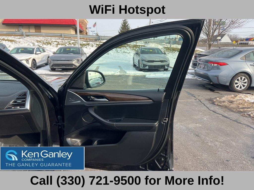2023 Black Sapphire Metallic BMW X3 xDrive30i Clean CARFAX. Leather, Navigation, Sunroof/Moonroof, All Wheel Drive, Heated Seats, Alloy Wheels, Recent Oil Change, Fully Detailed, Passed Dealer Inspection, 8-Speed Automatic Sport, 12 Speakers, 4-Wheel Disc Brakes, ABS brakes, Air Conditioning, Alloy wheels, AM/FM radio: SiriusXM, Apple CarPlay & Android Auto Compatibility, Auto High-beam ..Headlights, Auto-dimming door mirrors, Auto-dimming Rear-View mirror, Automatic temperature control, BMW Assist eCall, BMW TeleServices, Brake assist, Connected Package Pro, ConnectedDrive Services, Delay-off headlights, Dual front impact airbags, Dual front side impact airbags, Electronic Stability Control, Enhanced USB & Bluetooth® w/Smartphone Integration, Exterior Parking Camera Rear, Four wheel independent suspension, Front dual zone A/C, Fully automatic headlights, Garage door transmitter, Genuine wood dashboard insert, Genuine wood door panel insert, Heated door mirrors, Hi-Fi Sound System, Illuminated entry, Memory seat, Navigation, Outside temperature display, Panic alarm, Perforated SensaTec Upholstery, Power door mirrors, Power driver seat, Power Front Seats, Power Liftgate, Power passenger seat, Power steering, Power windows, Radio data system, Rear air conditioning, Rear reading lights, Rear window defroster, Rear window wiper, Remote keyless entry, Security system, Speed control, Speed-sensing steering, Speed-Sensitive Wipers, Steering wheel mounted audio controls, Tachometer, Telescoping steering wheel, Tilt steering wheel, Traction control, Trip computer, Turn signal indicator mirrors, Variably intermittent wipers, WiFi Hotspot.