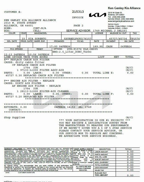 - Vehicle Name: Kia Sorento