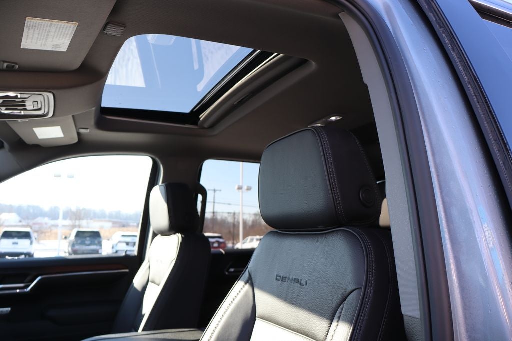 2024 Sterling Metallic GMC Sierra 1500 Denali 10-Speed Automatic, 4WD, Jet Black w/Leather-Appointed Seat Trim, 120-Volt Bed Mounted Power Outlet, 120-Volt Interior Power Outlet, 170 Amp Alternator, 2 Charge/Data USB Ports Inside Center Console, 2 Type-C Charge-Only Rear USB Ports, 2 USB Ports, Auto-Locking Rear Differential, Auxiliary External Transmission Oil Cooler, Bed View Camera, Chrome Header w/Signature Denali Chrome Grille, Chrome Recovery Hooks, Chrome Wheel To Wheel Assist Steps, Color-Keyed Carpeting Floor Covering, Deep-Tinted Glass, Denali Reserve Package, Electric Rear-Window Defogger, Floor-Mounted Center Console, Front Rain-Sensing Wipers, GMC Connected Access Capable, GMC MultiPro Power Steps, HD Surround Vision, Heated 2nd Row Outboard Seats, Heated Driver & Front Outboard Passenger Seating, Heavy-Duty Air Filter, Hill Descent Control, Hitch Guidance, Hitch View, In-Vehicle Trailering System App, Integrated Trailer Brake Controller, Keyless Open & Start, LED Cargo Area Lighting, Multicolor 15 Diagonal Head-Up Display, OnStar & GMC Connected Services Capable, Perimeter Lighting, Power Door Locks, Power Front Passenger Windows w/Express Up/Down, Power Front Windows w/Driver Express Up/Down, Power Rake & Telescoping Steering Column, Power Rear Windows w/Express Down, Power Sliding Rear Window w/Rear Defogger, Power Sunroof, Preferred Equipment Group 5SA, Premium Bose 7-Speaker Sound System, Push Button Start, Rear Camera Mirror, Rear Cross Traffic Braking, Rear Pedestrian Detection, Rear Wheelhouse Liners, Remote Vehicle Starter System, SiriusXM w/360L, Spray-On Pickup Bedliner w/Denali Logo, Steering Wheel Audio Controls, Technology Package, Theft Deterrent System (Unauthorized Entry), Trailer Camera Provisions, Trailer Side Blind Zone Alert, Trailering Package, Ultrasonic Front & Rear Park Assist, Universal Home Remote, Ventilated Driver & Front Passenger Seats, Wheel Locks (Set of 4) (LPO), Wheels: 22 x 9 Painted Aluminum, Wi-Fi Hotspot Capable, Wireless Charging.