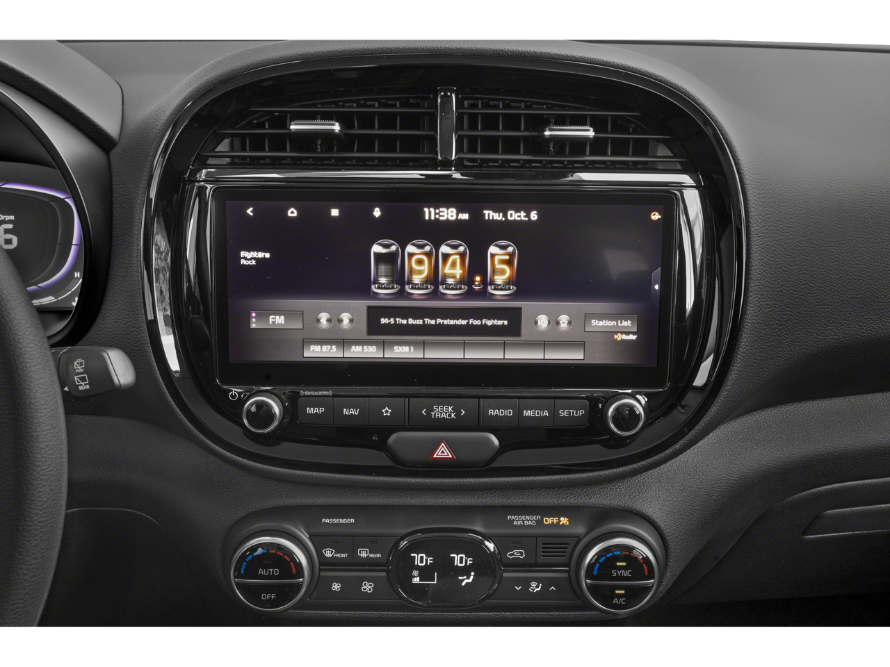 - Radio: AM/FM/MP3/HD Audio System -inc: UVO link, navigation, SiriusXM, 10.25" color touch screen, 6 speakers, Android Auto/Apple CarPlay, USB input, audio remote control, Bluetooth® wireless technology w/voice recognition and wireless charging