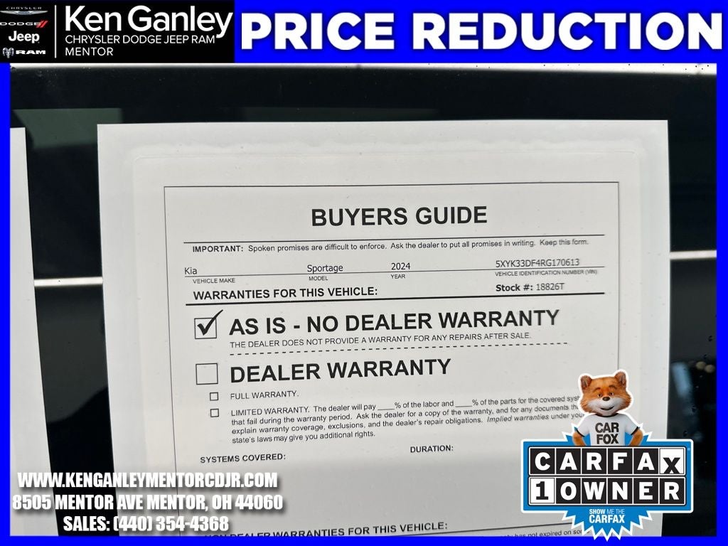 Alloy Wheels, Backup Camera, Bluetooth®, Hands-Free, Clean Carfax, Cruise Control, Heated Seats, Keyless Entry, Navigation, One Owner, Power Locks, Power Windows, Steering Wheel Controls, Sportage EX, 4D Sport Utility, I4, 8-Speed Automatic, FWD, Gravity Gray, Black w/Cloth Seat Trim, 18 Machined Alloy Wheels, 4-Wheel Disc Brakes, 6 Speakers, ABS brakes, Air Conditioning, Alloy wheels, AM/FM radio: SiriusXM, Apple CarPlay & Android Auto, Auto High-beam Headlights, Automatic temperature control, Axle Ratio: 3.648, Brake assist, Bumpers: body-color, Carpeted Floor Mats, Compass, Delay-off headlights, Driver door bin, Driver vanity mirror, Dual front impact airbags, Dual front side impact airbags, Electronic Stability Control, Emergency communication system, Four wheel independent suspension, Front anti-roll bar, Front Bucket Seats, Front Center Armrest, Front dual zone A/C, Fully automatic headlights, Heated door mirrors, Heated Front Bucket Seats, Heated front seats, Illuminated entry, Leather Shift Knob, Leather steering wheel, Leatherette Seat Trim, Low tire pressure warning, Navigation System, Occupant sensing airbag, Outside temperature display, Overhead airbag, Overhead console, Panic alarm, Passenger door bin, Passenger vanity mirror, Power door mirrors, Power driver seat, Power steering, Power windows, Radio: AM/FM/HD Audio System, Rain sensing wipers, Rear anti-roll bar, Rear seat center armrest, Rear side impact airbag, Rear window defroster, Rear window wiper, Remote keyless entry, Security system, Speed control, Speed-sensing steering, Split folding rear seat, Spoiler, Steering wheel mounted audio controls, Tachometer, Telescoping steering wheel, Tilt steering wheel, Traction control, Trip computer, Turn signal indicator mirrors, Variably intermittent wipers, Sportage EX, 4D Sport Utility, I4, 8-Speed Automatic, FWD, Gravity Gray, Black w/Cloth Seat Trim, 18 Machined Alloy Wheels, 4-Wheel Disc Brakes, 6 Speakers, ABS brakes, Air Conditioning, Alloy wheels, AM/FM radio: SiriusXM, Apple CarPlay & Android Auto, Auto High-beam Headlights, Automatic temperature control, Axle Ratio: 3.648, Brake assist, Bumpers: body-color, Carpeted Floor Mats, Compass, Delay-off headlights, Driver door bin, Driver vanity mirror, Dual front impact airbags, Dual front side impact airbags, Electronic Stability Control, Emergency communication system, Four wheel independent suspension, Front anti-roll bar, Front Bucket Seats, Front Center Armrest, Front dual zone A/C, Fully automatic headlights, Heated door mirrors, Heated Front Bucket Seats, Heated front seats, Illuminated entry, Leather Shift Knob, Leather steering wheel, Leatherette Seat Trim, Low tire pressure warning, Navigation System, Occupant sensing airbag, Outside temperature display, Overhead airbag, Overhead console, Panic alarm, Passenger door bin, Passenger vanity mirror, Power door mirrors, Power driver seat, Power steering, Power windows, Radio: AM/FM/HD Audio System, Rain sensing wipers, Rear anti-roll bar, Rear seat center armrest, Rear side impact airbag, Rear window defroster, Rear window wiper, Remote keyless entry, Security system, Speed control, Speed-sensing steering, Split folding rear seat, Spoiler, Steering wheel mounted audio controls, Tachometer, Telescoping steering wheel, Tilt steering wheel, Traction control, Trip computer, Turn signal indicator mirrors, Variably intermittent wipers. Kia Sportage 2024 Gravity Gray EX CARFAX One-Owner. Clean CARFAX.