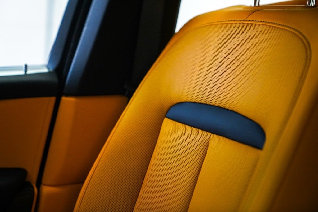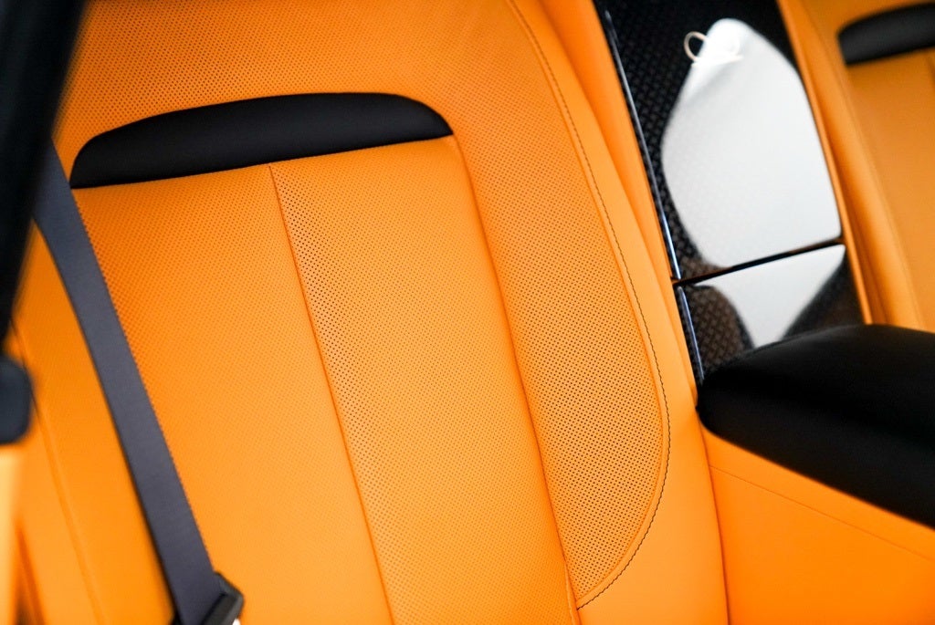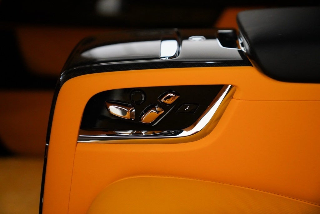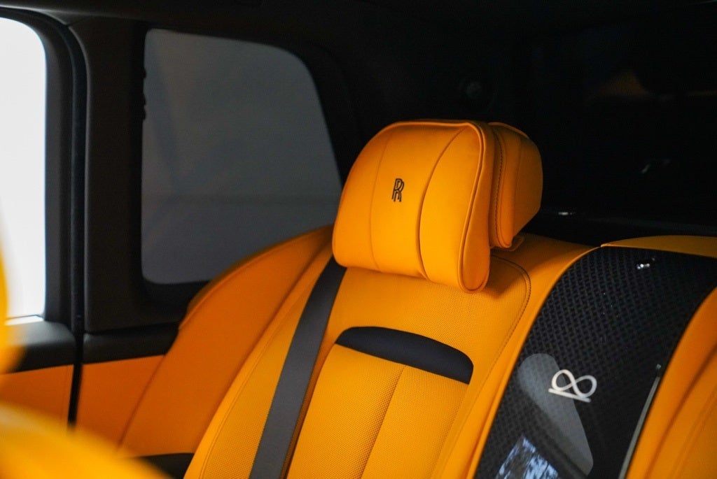The interior showcases Rolls-Royce craftsmanship with full leather upholstery, bespoke stitching, heated and ventilated seating, massage functionality, four zone climate control, and the iconic Starlight Headliner. Rear passengers enjoy individual seating, rear entertainment screens, and an environment designed for supreme comfort.