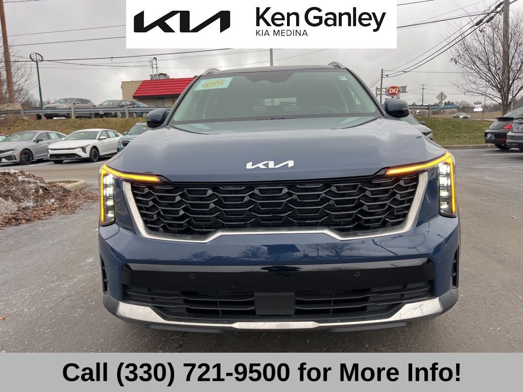 2025 Midnight Lake Blue Kia Sorento S Clean CARFAX. Leather, Navigation, Sunroof/Moonroof, Remote Start, 3rd Row Seating, Alloy Wheels, Recent Oil Change, Fully Detailed, Passed Dealer Inspection, 3rd row seats: split-bench, 4-Wheel Disc Brakes, 6 Speakers, ABS brakes, Air Conditioning, Alloy wheels, AM/FM radio: SiriusXM, Apple CarPlay & Android Auto, Auto High-beam Headlights, Automatic temperature control, Brake assist, Driver vanity mirror, Dual front impact airbags, Dual front side impact airbags, Electronic Stability Control, Emergency communication system: 911 Connect, Exterior Parking Camera Rear, Four wheel independent suspension, Front anti-roll bar, Front dual zone A/C, Fully automatic headlights, Heated door mirrors, Heated Front Bucket Seats, Illuminated entry, Knee airbag, Leather Shift Knob, Leather steering wheel, LED Interior Lighting, Low tire pressure warning, Navigation System, Occupant sensing airbag, Outside temperature display, Overhead airbag, Overhead console, Panic alarm, Panoramic Power Sunroof w/Power Sunshade, Panoramic Sunroof Package, Passenger door bin, Passenger vanity mirror, Power door mirrors, Power driver seat, Power steering, Power windows, Radio: AM/FM Standard Sound System, Rear anti-roll bar, Rear reading lights, Rear seat center armrest, Rear side impact airbag, Rear window defroster, Rear window wiper, Remote keyless entry, Security system, Speed control, Speed-sensing steering, Steering wheel mounted audio controls, SynTex Artificial Leather Seat Trim, Telescoping steering wheel, Tilt steering wheel, Traction control, Trip computer, Turn signal indicator mirrors, Variably intermittent wipers. Certified. Kia Certified Pre-Owned Details:
