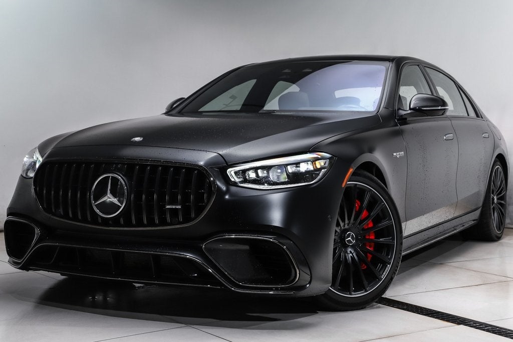 Mercedes-Benz S-Class S 63 E AMG® MANUFAKTUR Signature Night Black Magno - Certified, - Sunroof, - Navigation, - Leather Seats, 4.0L V8, 4MATIC®, Silver Grey/Black w/AMG Exclusive Nappa Leather Upholstery, 4-Zone Climate Control, Adaptive Rear Lighting, AMG® Nappa Leather Upholstery, AMG® Night Package, AMG® Performance Steering Wheel in Microfiber, Black Microfiber Headliner, Burmester® High-End 4D Surround Sound System, Carbon Fiber Trim, Chauffeur Package Rear, Electrically Adjustable Front Passenger Seat, Exterior Parking Camera Rear, Heated front seats, Heated rear seats, MBUX Rear Tablet, Omission Heat-Insulating Dark-Tinted Glass, Power moonroof: Panorama, Rear MBUX Interior Assistant, Rear Seat Belt Airbags, Rear Seat Package, Red Brake Calipers, Ventilated front seats, Ventilated rear seats, Wheels: Black 21 AMG® Forged Multi-Spoke, Wireless Charging Rear. Certified. CARFAX One-Owner. Clean CARFAX.