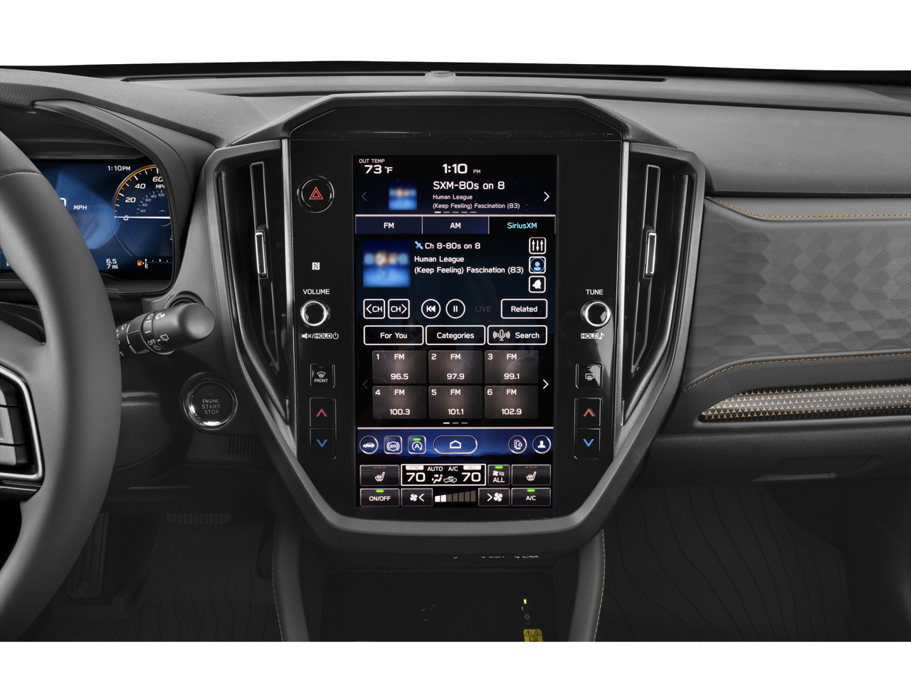 - Radio: Subaru 11.6" Multimedia Plus System -inc: valet mode, integrated center information display, AM/FM stereo HD Radio, multi-touch gesture high resolution display screen, voice activated controls, Bluetooth® audio streaming and hands-free phone connectivity w/SMS text messaging (refer to Subaru.com for cellphone compatibility), iPod control capability, smartphone integration: Android Auto and Apple CarPlay w/full screen view and wireless connection, USB and Over The Air (OTA) audio system update, steering wheel controls, 6 speakers, 3.5mm auxiliary input jack and roof mounted audio and satellite antenna