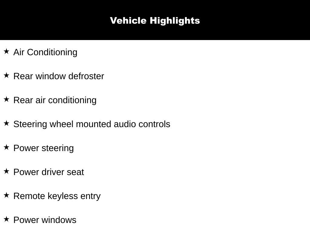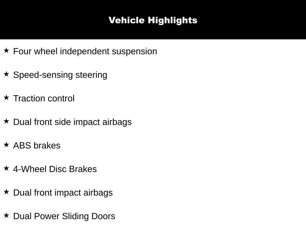 - Tailgate/Rear Door Lock Included w/Power Door Locks