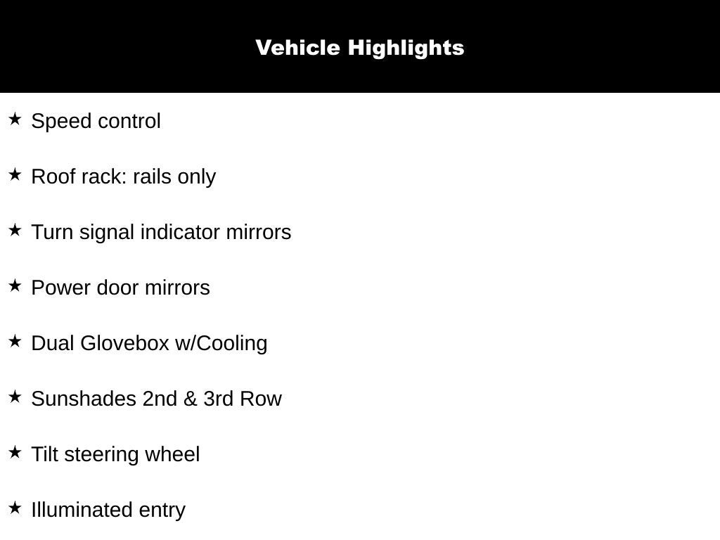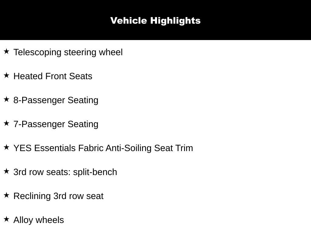 - 7-Passenger Seating -inc: Stow-N-Slide 2nd row, 8-way power driver seat, 2-way power lumbar