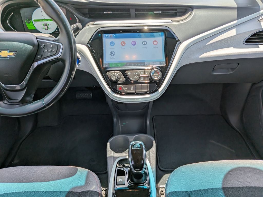 2017 Nightfall Gray Metallic Chevrolet Bolt EV LT This Chevrolet Bolt EV has many features and is well equipped including, 17 Painted Aluminum Wheels, 2 USB Ports & Auxiliary Input Jack, 3-Spoke Leather-Wrapped Steering Wheel, 4-Wheel Disc Brakes, 6 Speakers, 6-Speaker Audio System, 6-Way Manual Driver Seat Adjuster, 6-Way Manual Passenger Seat Adjuster, ABS brakes, Air Conditioning, Alloy wheels, AM/FM radio: SiriusXM, Apple CarPlay/Android Auto, Auto-Dimming Inside Rear-View Mirror, Automatic temperature control, Black Grille, Brake assist, Bumpers: body-color, Comfort & Convenience Package, Compass, Delay-off headlights, Deluxe Cloth Seat Trim, Driver door bin, Driver vanity mirror, Dual front impact airbags, Dual front side impact airbags, Electronic Stability Control, Emergency communication system: OnStar Guidance, Exterior Parking Camera Rear, Front anti-roll bar, Front Bucket Seats, Front Center Armrest, Front License Plate Bracket, Front reading lights, Front wheel independent suspension, Fully automatic headlights, Heated door mirrors, Heated Driver & Front Passenger Seats, Heated Steering Wheel, High-Intensity Discharge Headlights, Illuminated entry, Knee airbag, Low tire pressure warning, Occupant sensing airbag, Outside temperature display, Overhead airbag, Overhead console, Panic alarm, Passenger door bin, Passenger vanity mirror, Power door mirrors, Power steering, Power windows, Preferred Equipment Group 2LT, Premium audio system: Chevrolet MyLink, Radio: Chevrolet MyLink AM/FM Stereo, Rear side impact airbag, Rear window defroster, Rear window wiper, Remote keyless entry, Security system, SiriusXM Satellite Radio, Speed control, Split folding rear seat, Spoiler, Steering wheel mounted audio controls, Telescoping steering wheel, Tilt steering wheel, Traction control, Trip computer, Variably intermittent wipers.